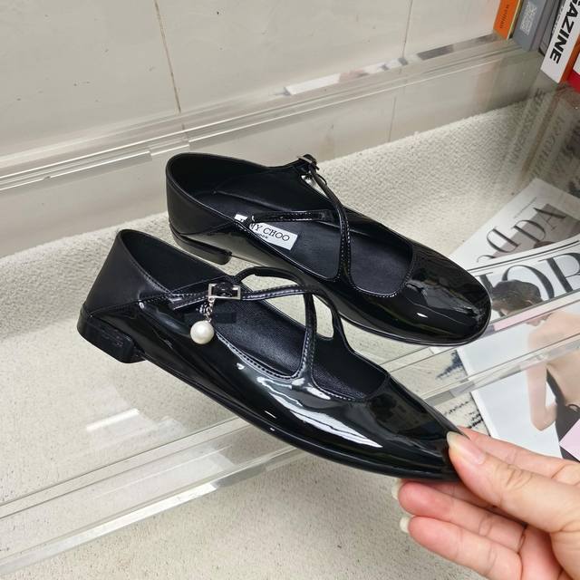 Jimmy Choo 新品交叉带珍珠平底两穿玛丽珍鞋,经典的交叉带设计 纵横交错间巧妙修饰脚型 为双足添一抹灵动韵致。鞋面上大颗圆润珍珠点缀其中光泽柔和温润与皮质的细腻相得益彰流露出优雅矜贵气质彰显不俗品味。平底款式回归舒适本真 舒适性好,走在春日街头 自在惬意 毫无束缚感。无论是搭配清新碎花裙漫步花园还是身着简约牛仔裤出街它都能完美适配轻松点亮春日造型 鞋面:采用原版定制皮料 内里:小羊皮 大底:原版定制Tpu大底 码数:35~39 34 40~41定做不退换