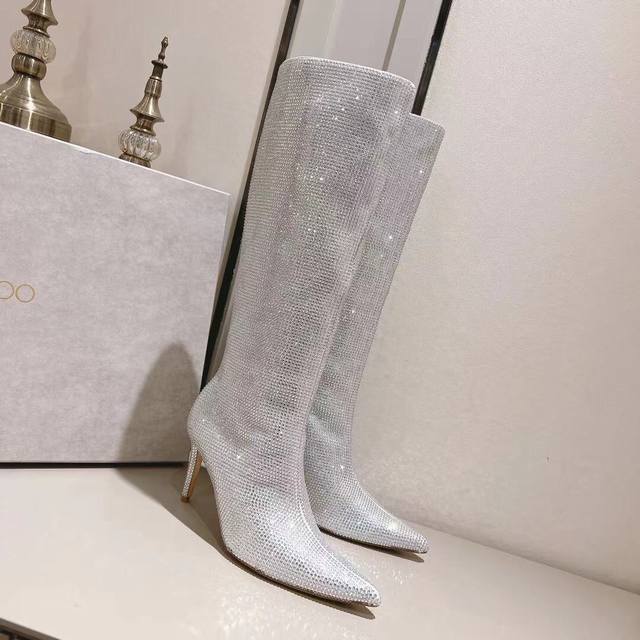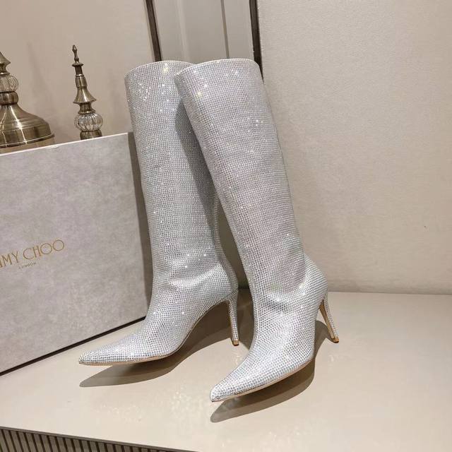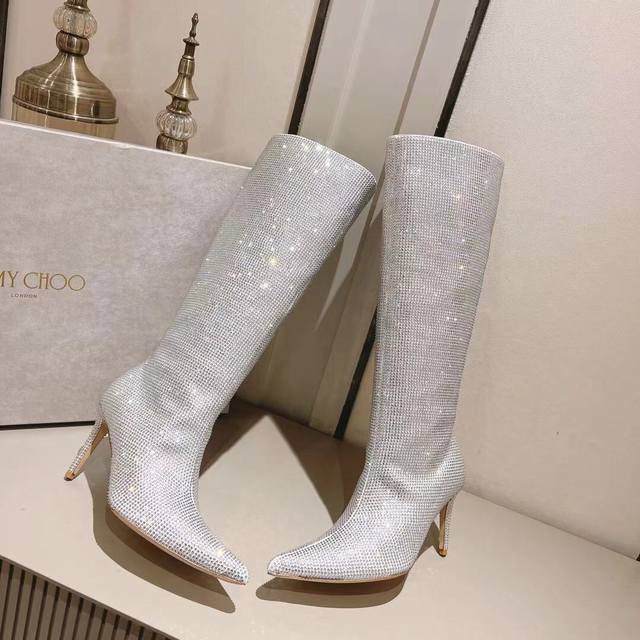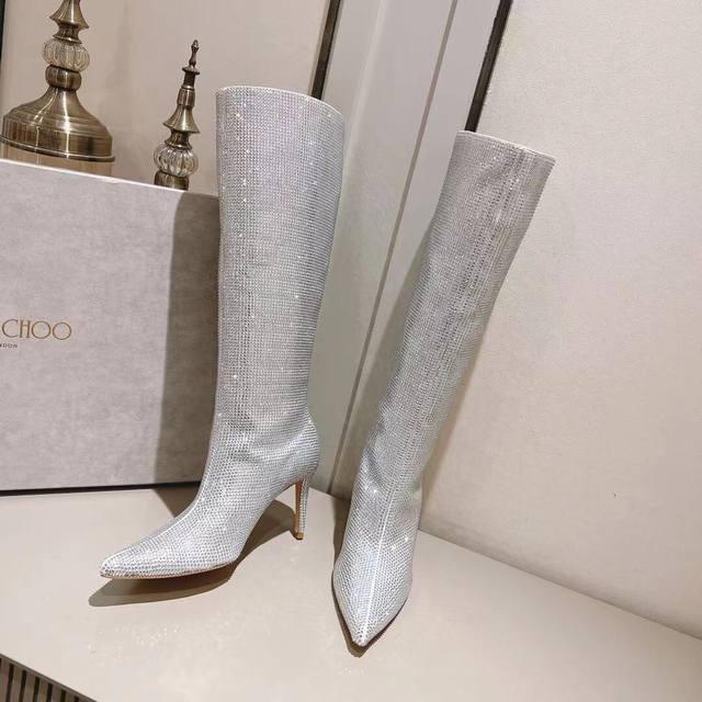 Jimmy Choo 独家发售独家开模采用最新工艺设计,立体感强多种工艺融合一起,颠覆时尚,超级有型!小红书爆款百搭又潮流,可盐可甜!鞋面采用进口水钻机器压制在鞋面,不易脱落,一款高级定制的设计一款水钻靴子,明星同款。上脚效果真的超级好看,时尚感满满的,一款必备神器款 面料:定制进口绒布烫钻 内里:羊皮 颜色:黑色 银色 金色 红色 码数:35~39 34 40~42定做不退换 大底:意大利进口真皮大底 跟高:8.5Cm