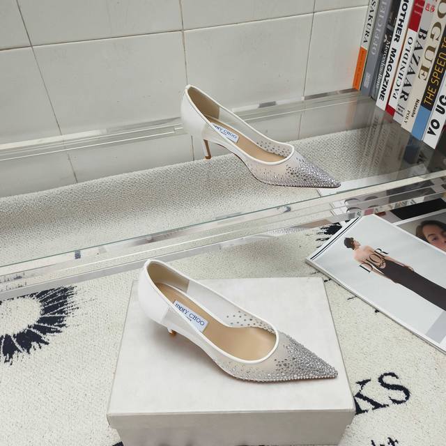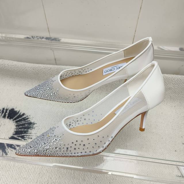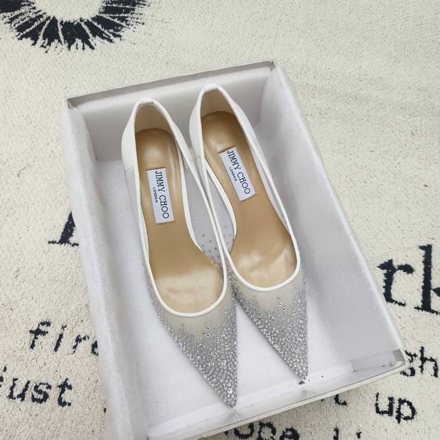 Jimmy Choo 网纱水钻尖头鞋代购级别!水晶镶嵌 闪烁迷人,购入Zp开模打版 无论材质还是做工细节我们家都是对版的,在调楦的时候 每修改一次楦就要调整一次
