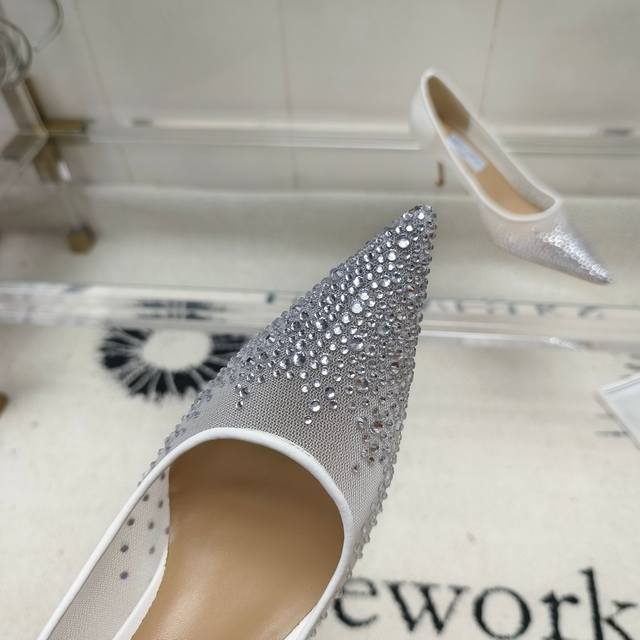 / Jimmy Choo 网纱水钻尖头鞋代购级别!水晶镶嵌 闪烁迷人,购入Zp开模打版 无论材质还是做工细节我们家都是对版的,在调楦的时候 每修改一次楦就要调整一次