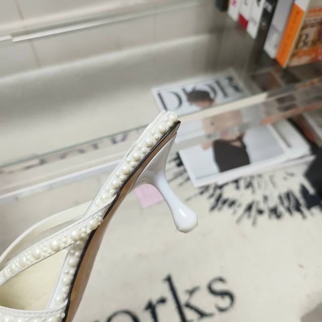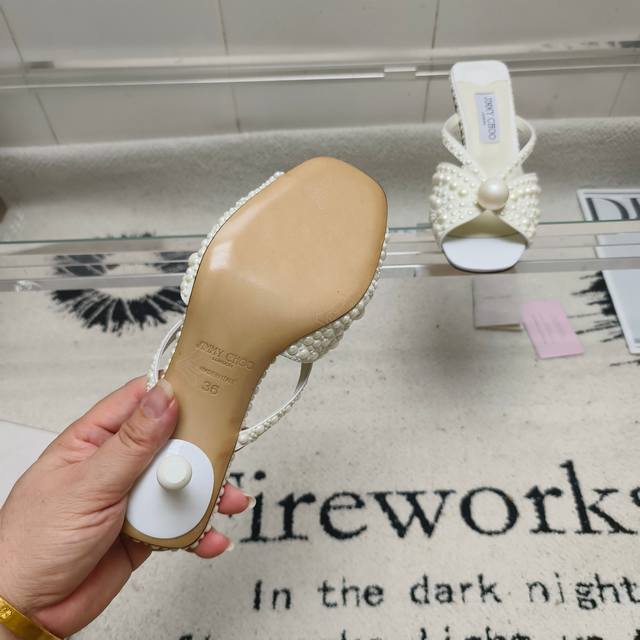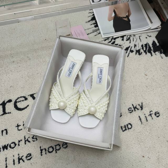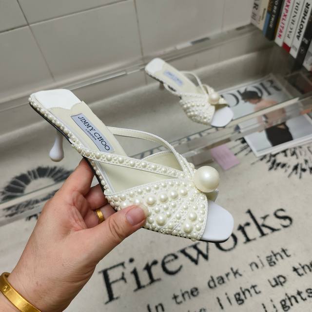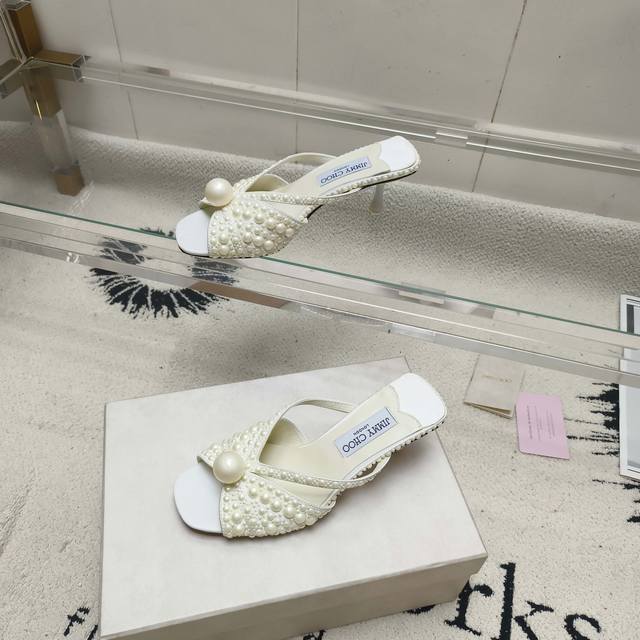Jimmy Choo Siva Mule系列穆勒鞋,闪耀缎面材质上满铺珍珠,熠熠光芒,引人注目。露趾廓形搭配柔和立体感鞋跟,营造柔美和谐气息,鞋面饰有一颗超大奢雅珍珠,为鞋履增添一抹吸睛亮点。精美鞋型专为营造些许夸张优雅时刻而设计,是搭配各种重要场合造型的奢美之选。 鞋面:进口真丝+高温烫珍珠 内里:进口小羊皮 大底:意大利进口真皮大底 码数:35~39 34 40-42定做不退换 跟高:5.5Cm