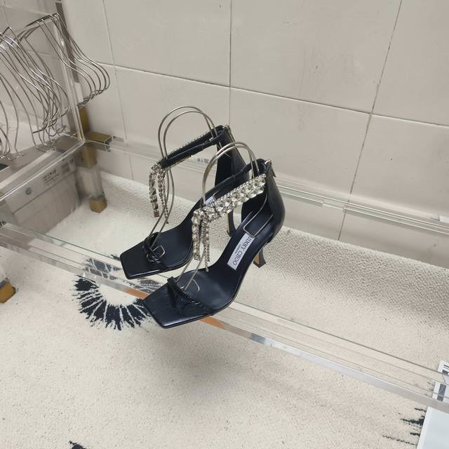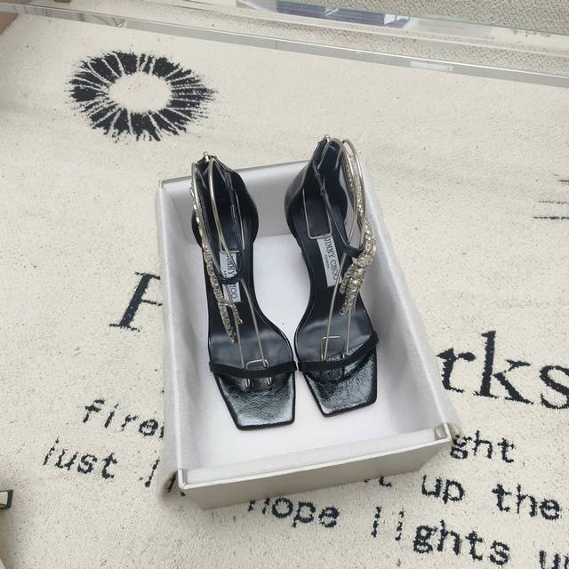 Jimmy Choo Veitysandal女士复古金属感凉鞋.鞋面复古金属感小牛皮,在脚裸处饰有层叠水晶,是一款光彩夺目时尚款,该款式采用方形鞋头和雕花跟设计,性感不失风度,Bingbing的水晶闪闪发光! 鞋面:黑色 银色 白色 金色 内里:进口意制小羊皮 大底:进口意大利真皮大底 码数:35~39 34 40 41 42定制不退换 跟高:10Cm