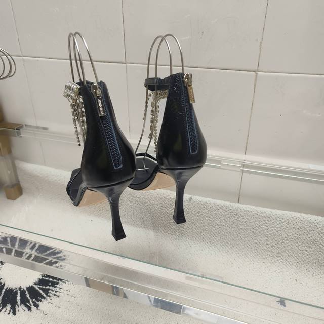/ Jimmy Choo Veitysandal女士复古金属感凉鞋.鞋面复古金属感小牛皮,在脚裸处饰有层叠水晶,是一款光彩夺目时尚款,该款式采用方形鞋头和雕花跟设计
