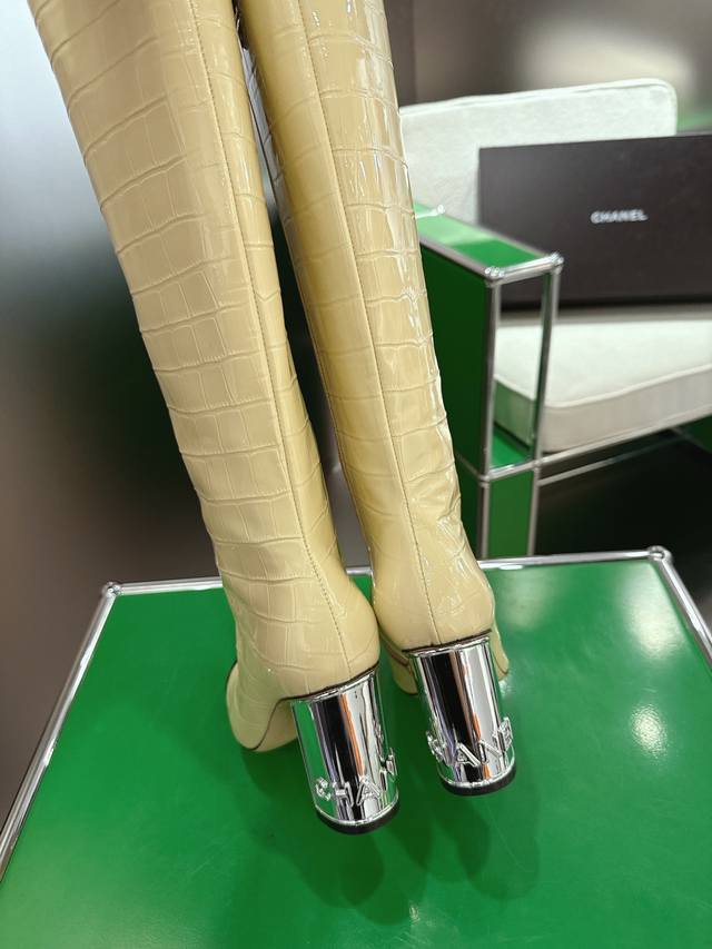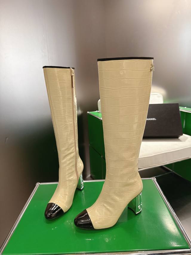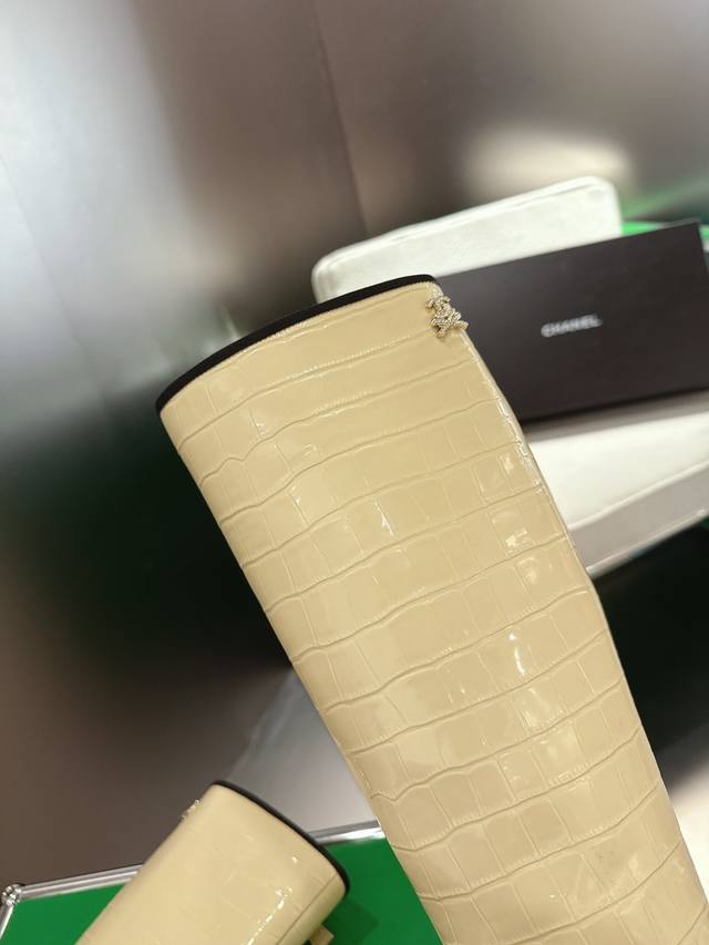 / K044L 香奈儿2025新款秋冬高跟长靴 精致电渡字母跟靴口开模点钻小标15高靴 面;进口石头纹小牛油 内里;丝绸羊皮 垫脚;丝绸羊皮 大底;意大利真皮 跟高