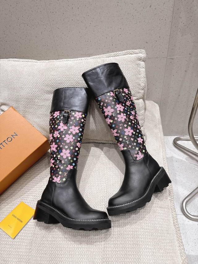 / Loui& Vuitto& 秋冬新品短靴 驴家的靴子上脚都非常好看 鞋子黑色和老花的拼接恰到好处!侧面搭配Lv标志的金属扣精致特别 上脚非常显腿瘦 材料:进口牛