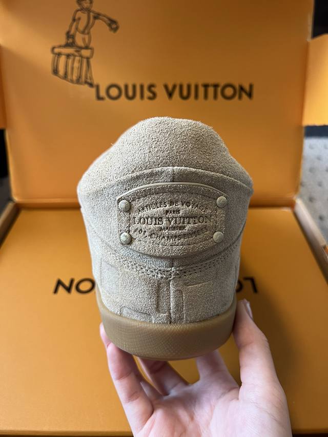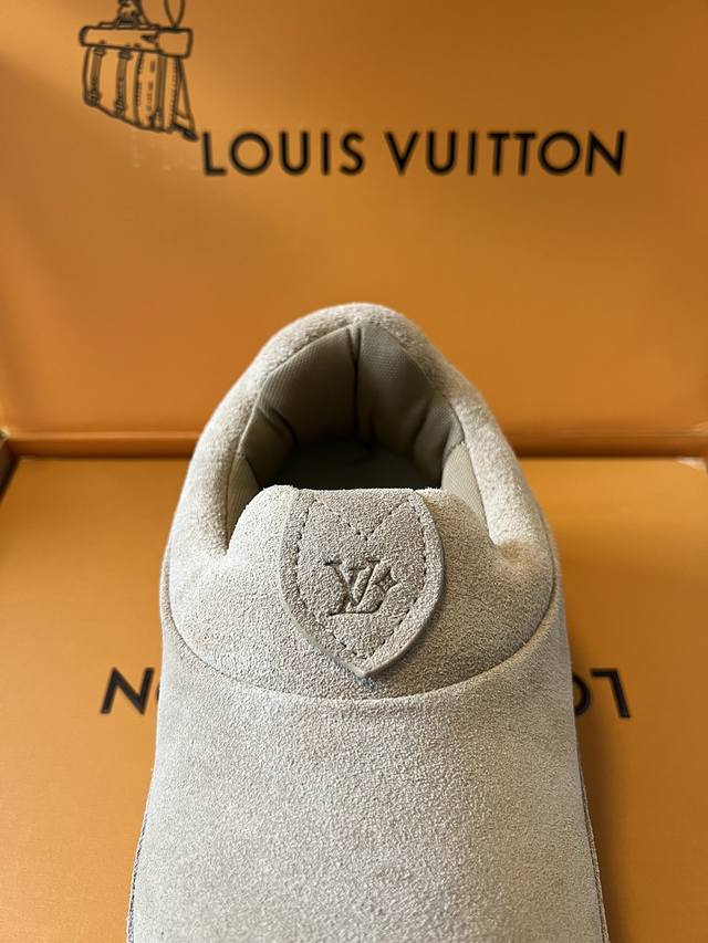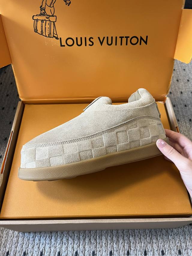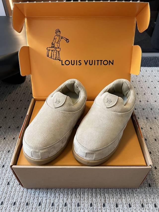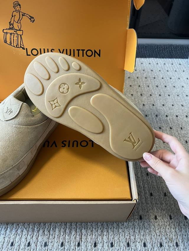 Louis Vuitto* 路易威登系带 厚底胖丁鞋 最新款情侣 男女款 德比鞋 外观上,它采用浅米色的麂皮材质,质感细腻。鞋面上有品牌标志性的“Lv”压印,搭配粗麻绳质感的鞋带,系成蝴蝶结样式,增添了几分随性与精致感。鞋底为浅棕色,与鞋身颜色相呼应,整体风格简约又不失品牌辨识度。 日常逛街时,搭配休闲装,既舒适又有时尚感,能轻松应对长时间行走;和朋友约咖啡,简约又有质感的它,能为整体造型加分,尽显优雅随性;周末短途出游,无论是漫步城市街头,还是去郊外小逛,都能适配轻松的氛围,让穿搭既舒适又不失格调。 鞋