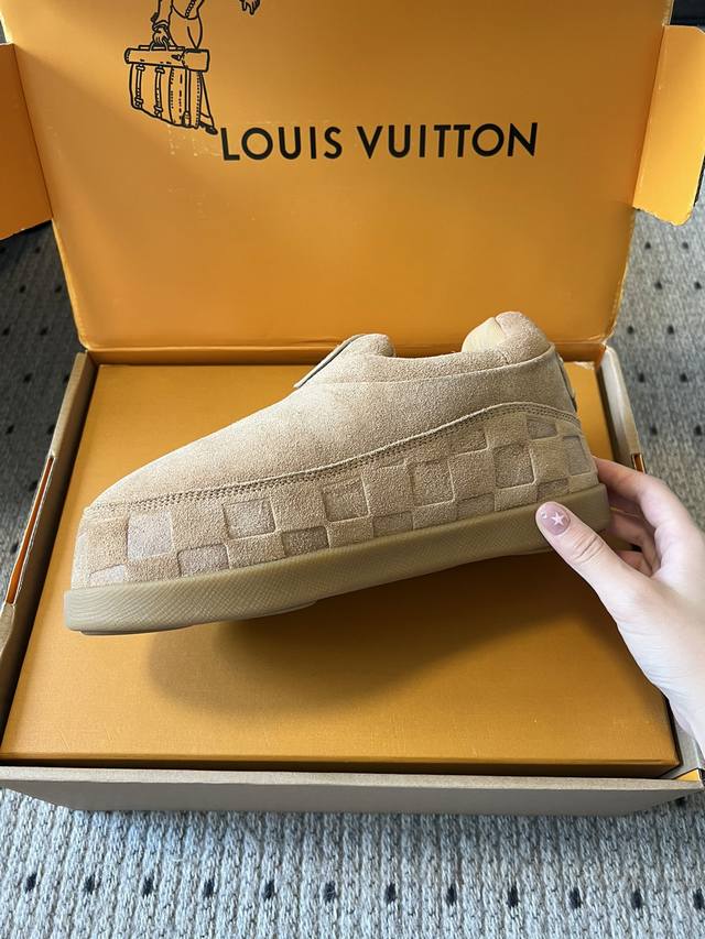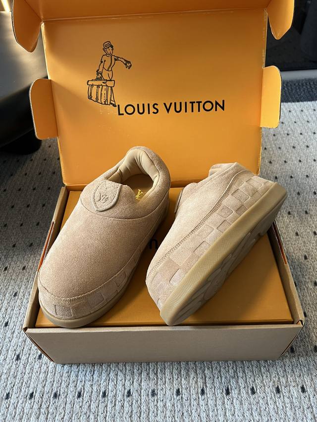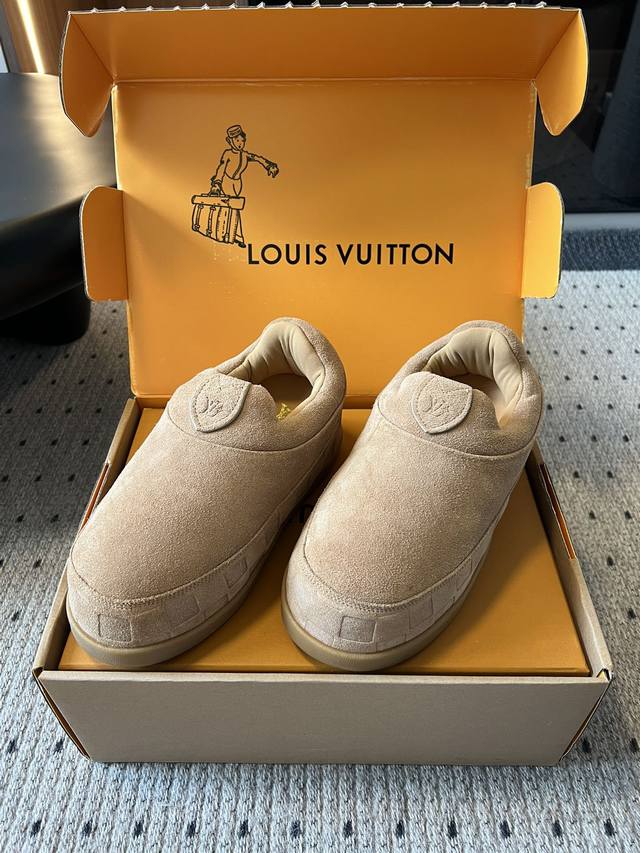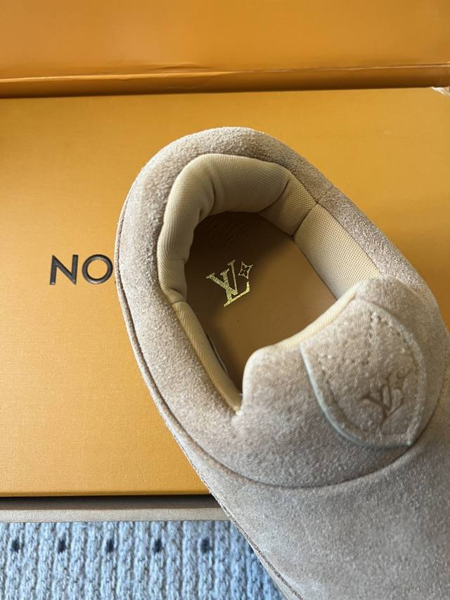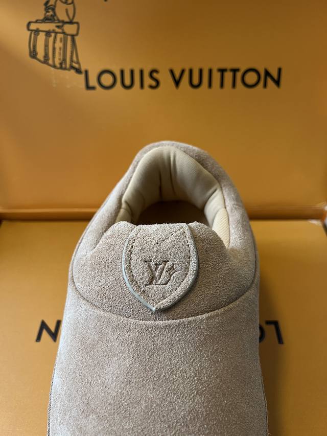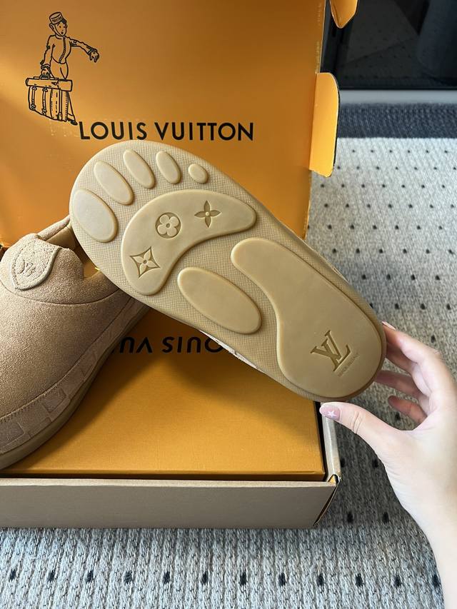 Louis Vuitto* 路易威登系带 厚底胖丁鞋 最新款情侣 男女款 德比鞋 外观上,它采用浅米色的麂皮材质,质感细腻。鞋面上有品牌标志性的“Lv”压印,搭配粗麻绳质感的鞋带,系成蝴蝶结样式,增添了几分随性与精致感。鞋底为浅棕色,与鞋身颜色相呼应,整体风格简约又不失品牌辨识度。 日常逛街时,搭配休闲装,既舒适又有时尚感,能轻松应对长时间行走;和朋友约咖啡,简约又有质感的它,能为整体造型加分,尽显优雅随性;周末短途出游,无论是漫步城市街头,还是去郊外小逛,都能适配轻松的氛围,让穿搭既舒适又不失格调。 鞋