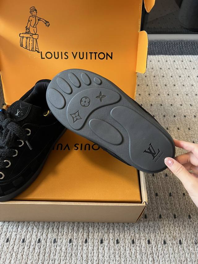 Louis Vuitto* 路易威登系带 厚底胖丁鞋 最新款情侣 男女款 德比鞋 外观上,它采用浅米色的麂皮材质,质感细腻。鞋面上有品牌标志性的“Lv”压印,搭配粗麻绳质感的鞋带,系成蝴蝶结样式,增添了几分随性与精致感。鞋底为浅棕色,与鞋身颜色相呼应,整体风格简约又不失品牌辨识度。 日常逛街时,搭配休闲装,既舒适又有时尚感,能轻松应对长时间行走;和朋友约咖啡,简约又有质感的它,能为整体造型加分,尽显优雅随性;周末短途出游,无论是漫步城市街头,还是去郊外小逛,都能适配轻松的氛围,让穿搭既舒适又不失格调。 鞋