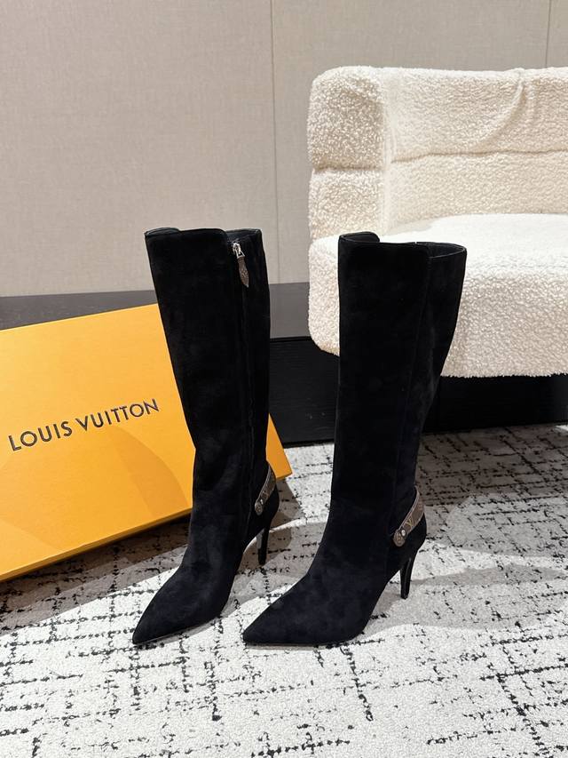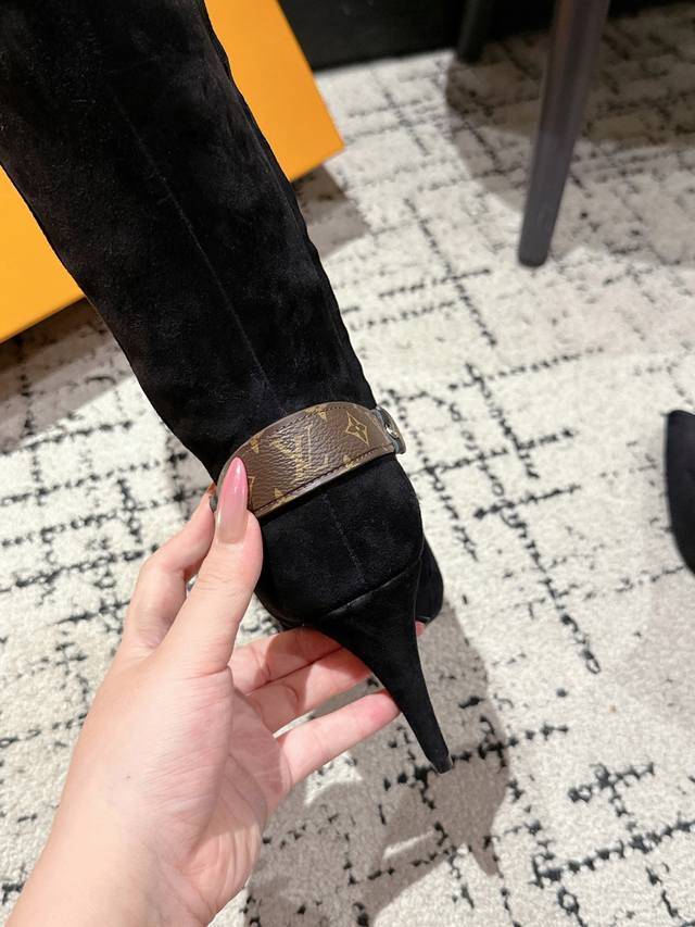 / Louis Vuitton 早秋新款 25 Lv Legacy 尖头高跟长靴侧拉链老花皮带长筒靴 本款 Legacy 及踝靴取材光滑牛皮革,搭配宛若品牌传统硬箱