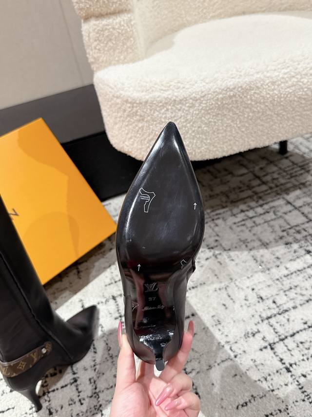 Louis Vuitton 早秋新款 25 Lv Legacy 尖头高跟长靴侧拉链老花皮带长筒靴 本款 Legacy 及踝靴取材光滑牛皮革,搭配宛若品牌传统硬箱手柄的 Monogram 帆布饰带,致意路易威登的旅行传承。铭纹金属饰钉点睛尖头高跟廓形。 面料:小牛皮 老花皮 内里:羊皮 大底:意大利真皮大底 跟高:9.5Cm Size:#35-41 40.41定做不退换