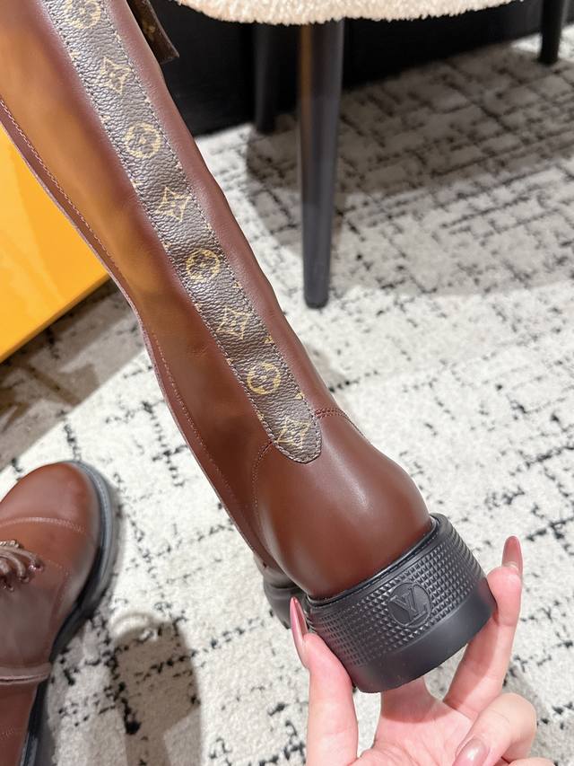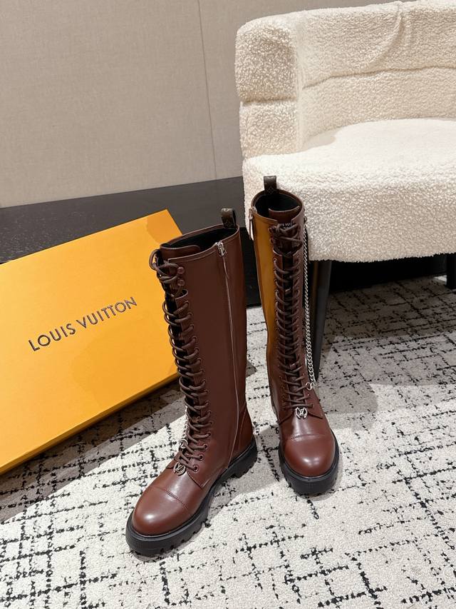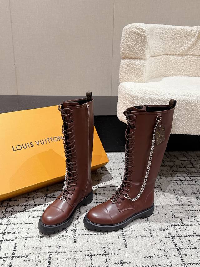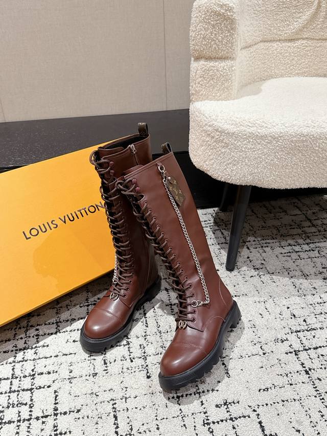 Louis Vuitton 秋冬新款 25 Lv District Ranger 长靴 链条老花吊坠骑士靴系带厚底侧拉链长筒靴 本款District Range
