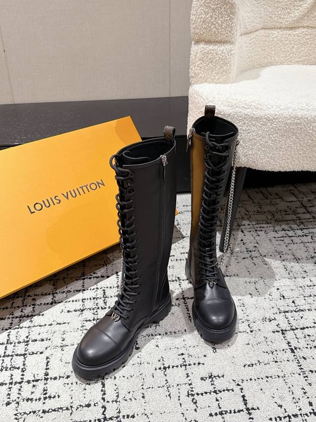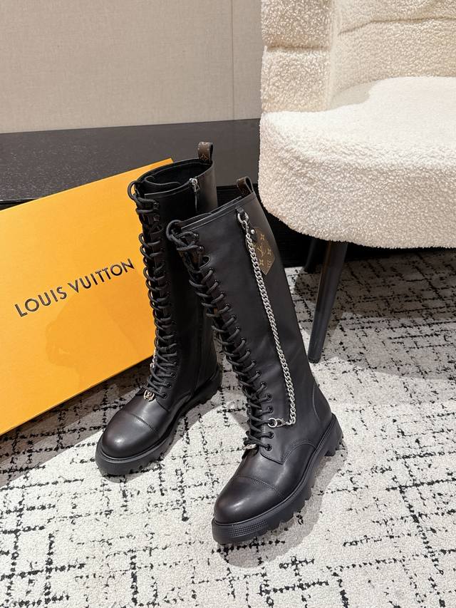 / Louis Vuitton 秋冬新款 25 Lv District Ranger 长靴 链条老花吊坠骑士靴系带厚底侧拉链长筒靴 本款District Range