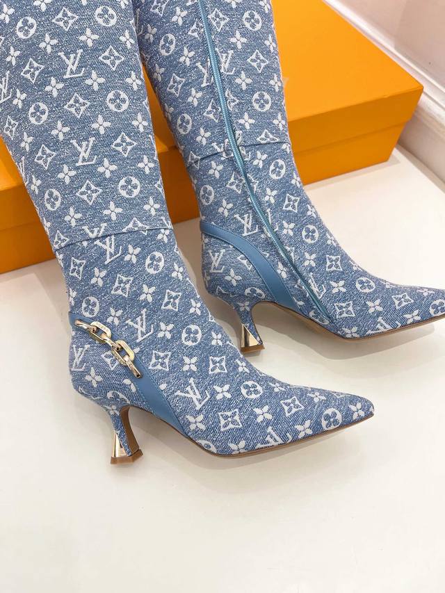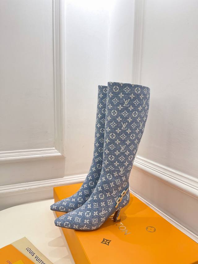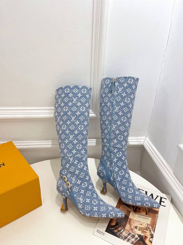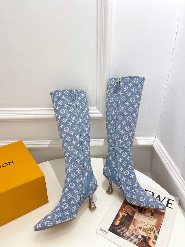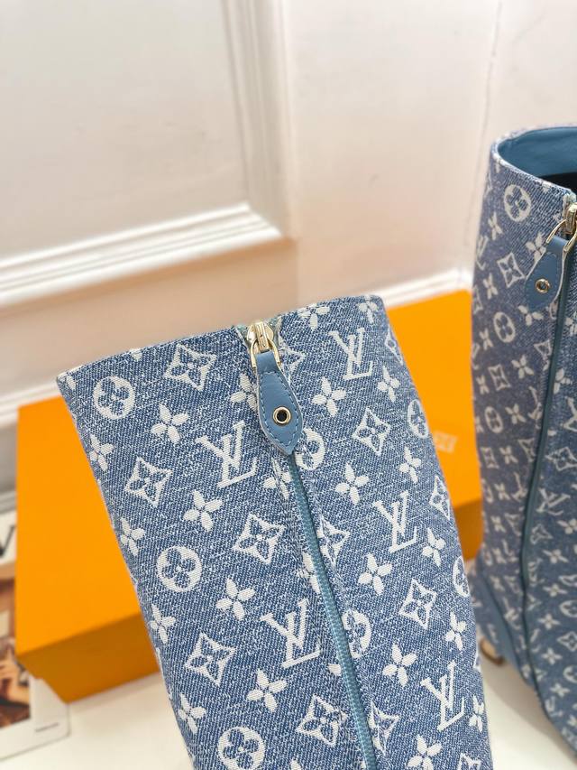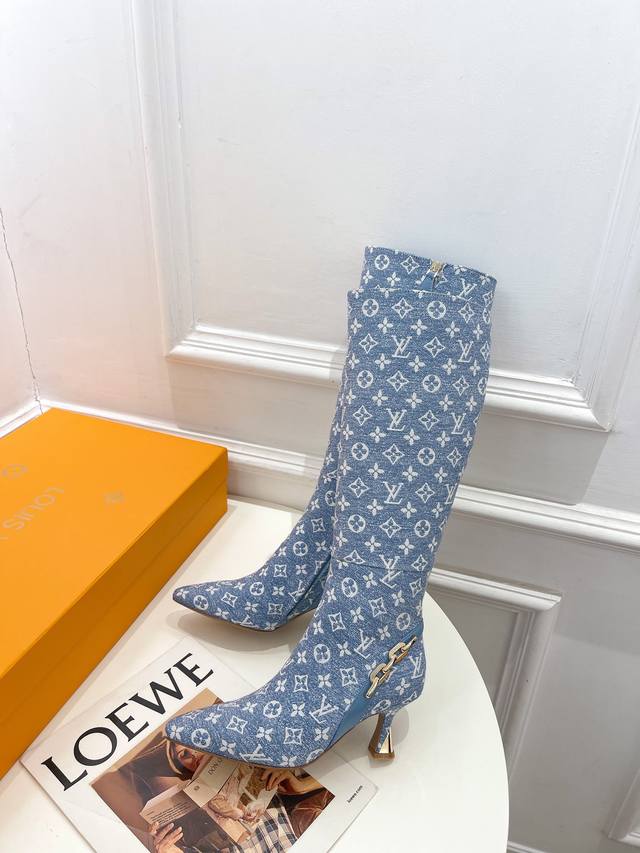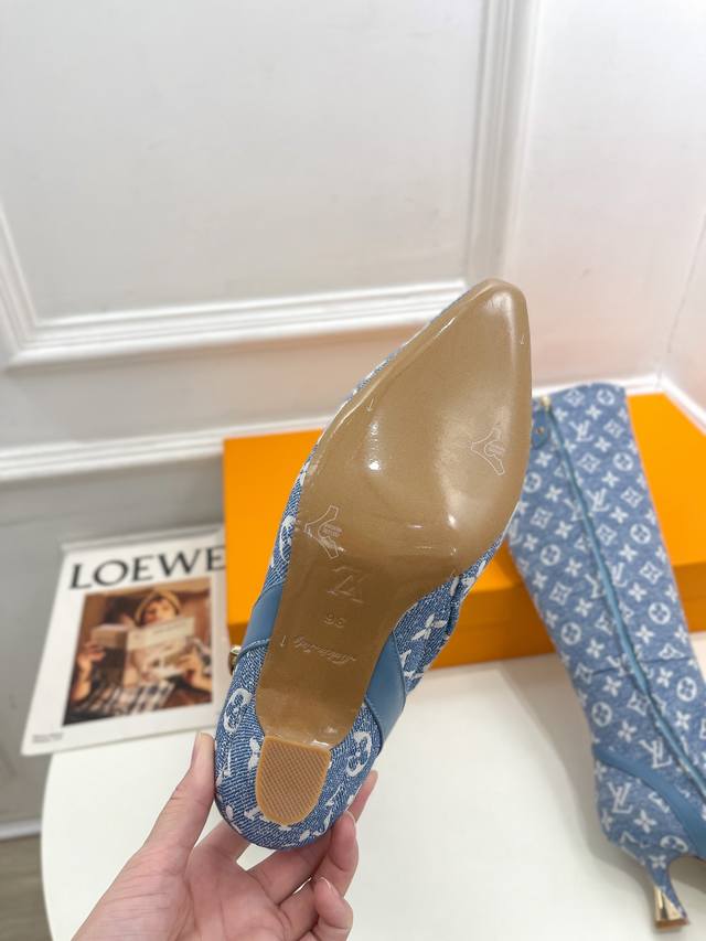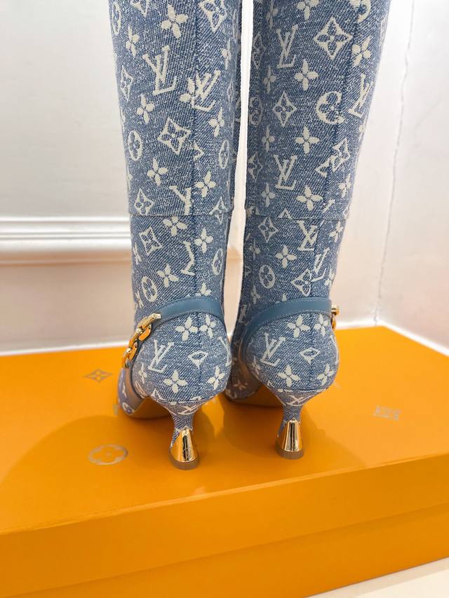 Lv 路易威登 24 2025 秋冬新款 顶级版本 专柜主打最新款 小方头金属跟裸靴 硬货上新 代购级别!高级感十足!国内外博主刷爆的一款,复古又时髦 上脚美炸了!官网主推款★ T 鞋面:原版小牛皮 老花皮 牛仔布 内里:进口山羊皮里 大底:原版意大利真皮大底 跟高:6.5Cm、9.5Cm 鞋码: 35-39 34、40、41定制不退换 出厂价Pp:中跟牛仔布: 中跟 皮面:P