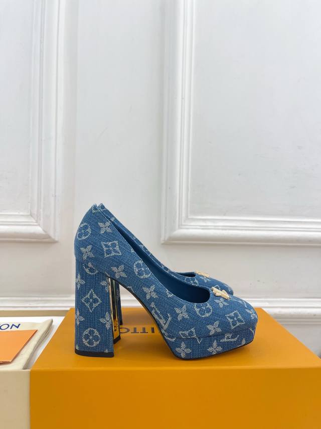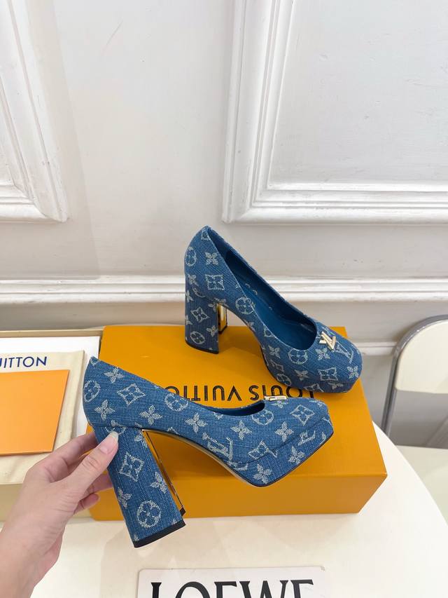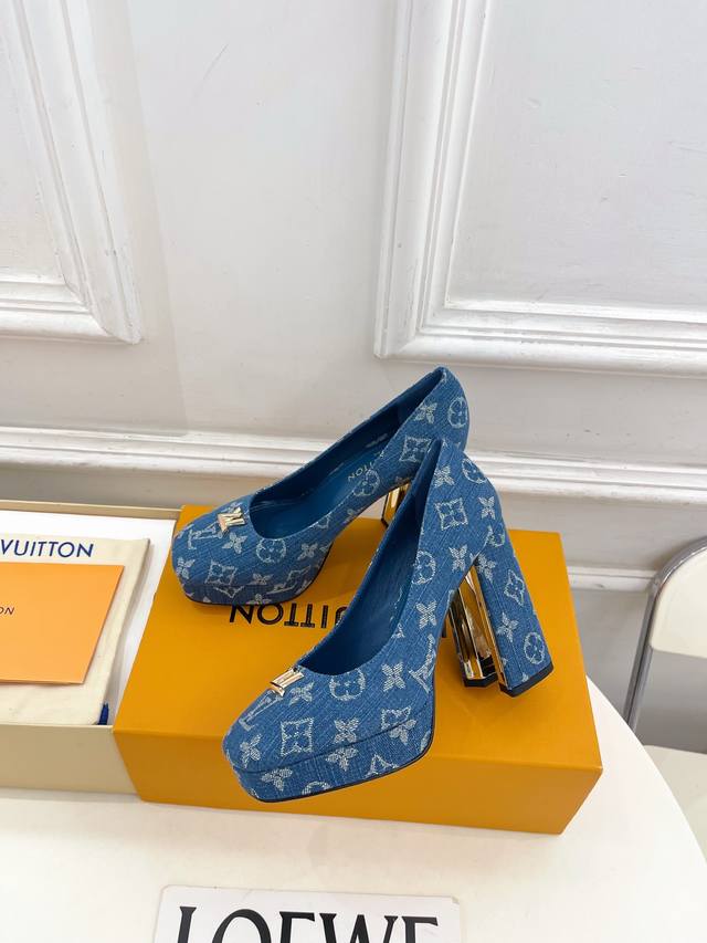 Lv 路易威登 25 2025秋冬新款 顶级版本 专柜主打最新品爆款V形镂空高跟防水台单鞋 硬货上新 Bs代购级别!高级感十足!国内外博主刷爆的一款,复古又时髦 上脚美炸了!官网主推款★ T 鞋面:原版定制牛皮 牛漆皮 老花皮 丹宁布 内里:进口山羊皮里 大底:原版意大利真皮大底 跟高:11Cm 、水台2.5Cm 鞋码: 35-39 34、40、41定制不退换 出厂价Pp: