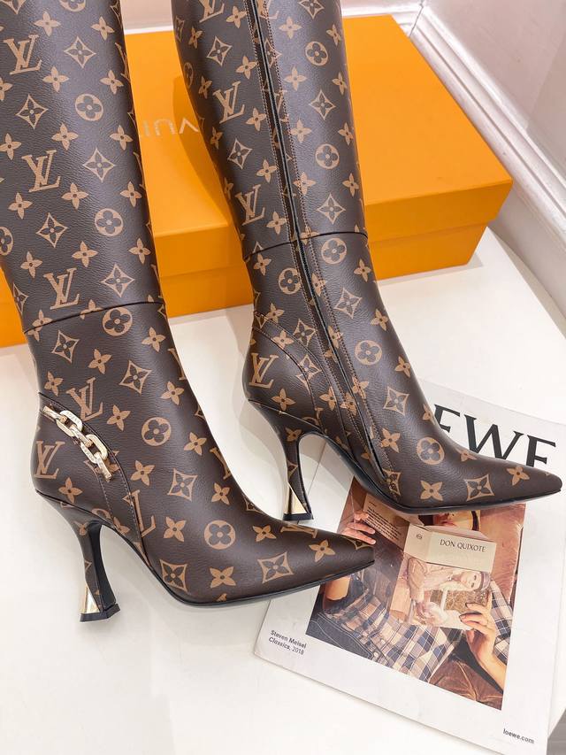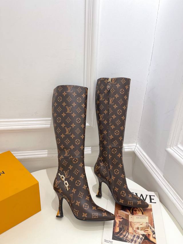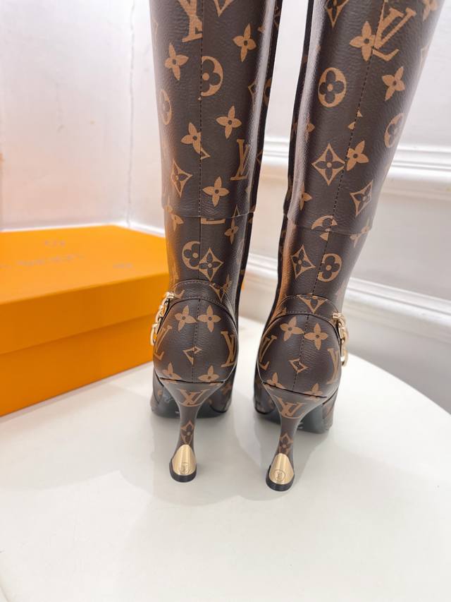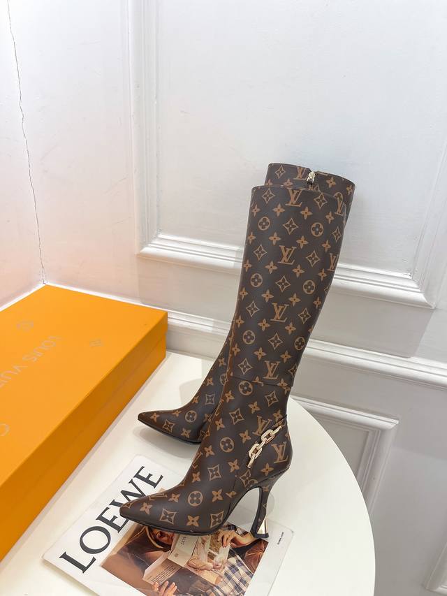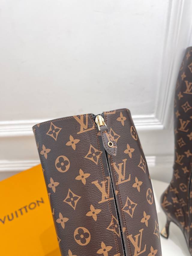 Lv 路易威登 25 2025 秋冬新款 顶级版本 专柜主打最新款 小方头金属跟裸靴 硬货上新 代购级别!高级感十足!国内外博主刷爆的一款,复古又时髦 上脚美炸了!官网主推款★ T 鞋面:原版小牛皮 老花皮 牛仔布 内里:进口山羊皮里 大底:原版意大利真皮大底 跟高:6.5Cm、9.5Cm 鞋码: 35-39 34、40、41定制不退换 出厂价Pp:高跟牛仔布: 高跟皮面: