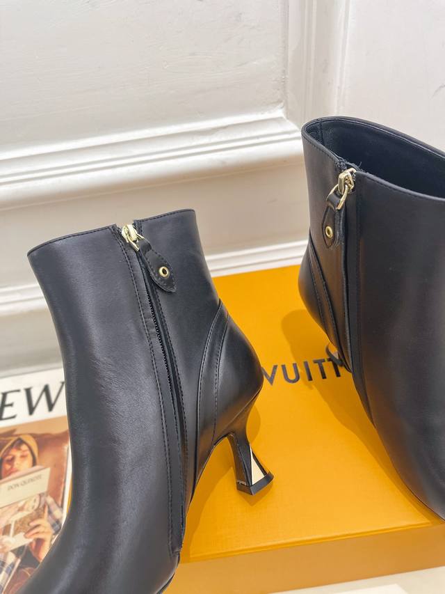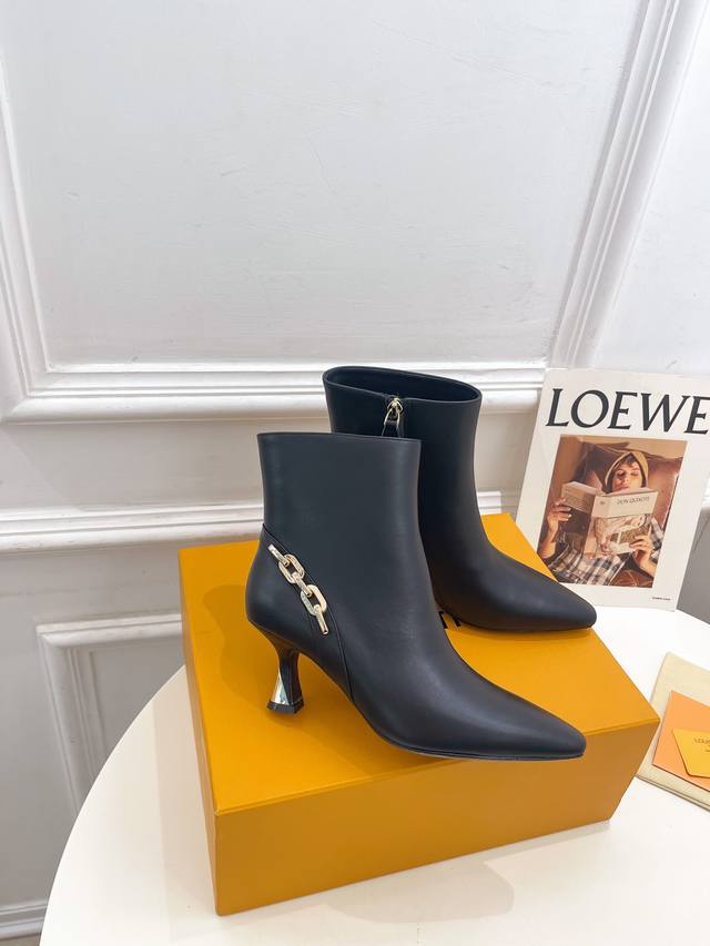 Lv 路易威登 25 2025 秋冬新款 顶级版本 专柜主打最新款 小方头金属跟裸靴 硬货上新 代购级别!高级感十足!国内外博主刷爆的一款,复古又时髦 上脚美炸了!官网主推款★ T 鞋面:原版小牛皮 老花皮 牛仔布 内里:进口山羊皮里 大底:原版意大利真皮大底 跟高:6.5Cm、9.5Cm 鞋码: 35-39 34、40、41定制不退换 出厂价Pp:中跟牛仔布: 中跟皮面: