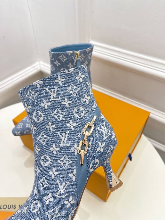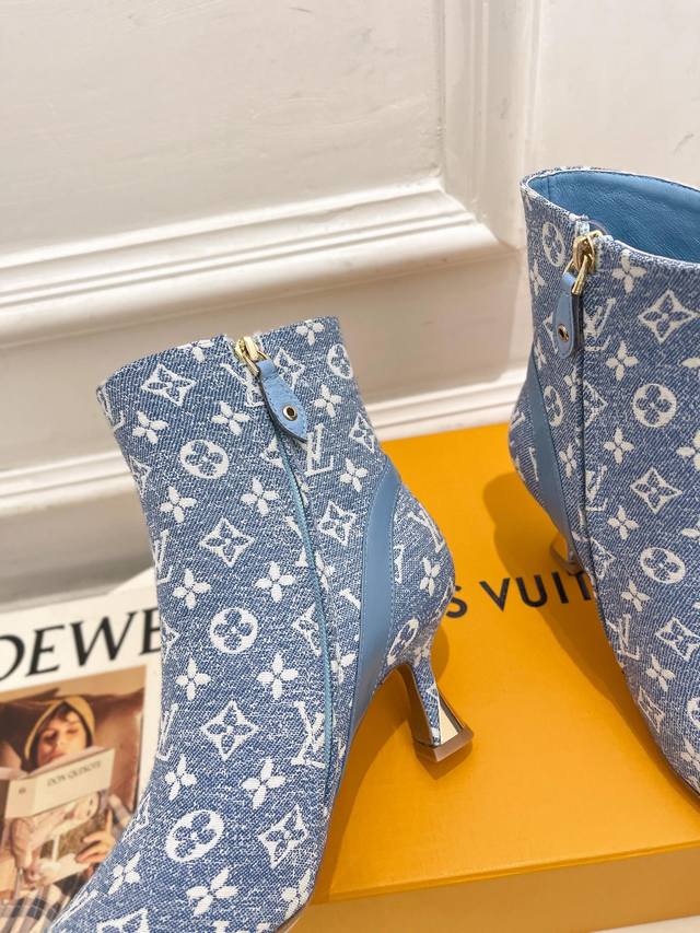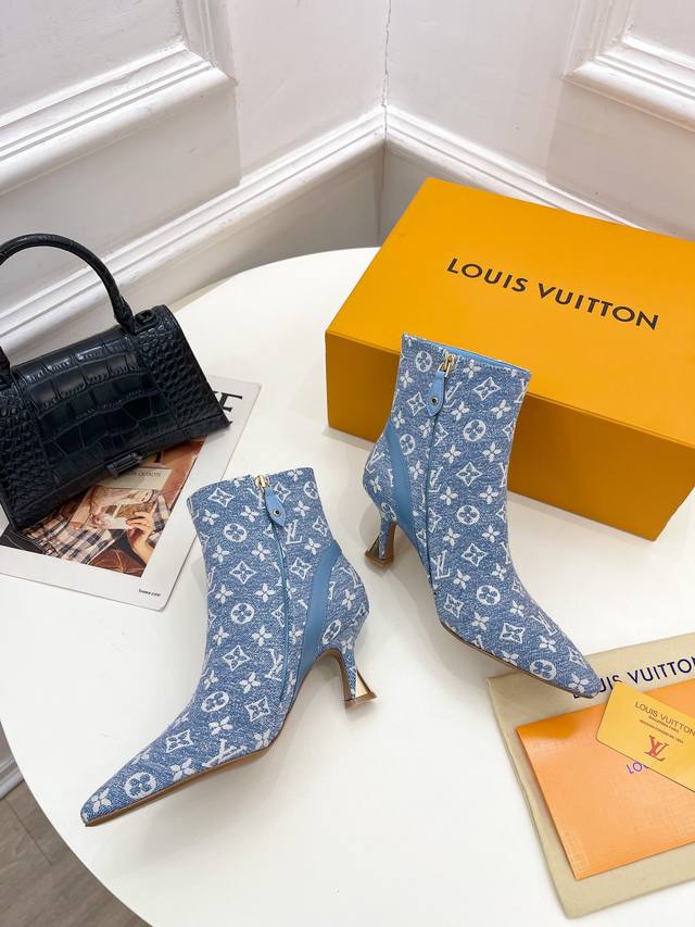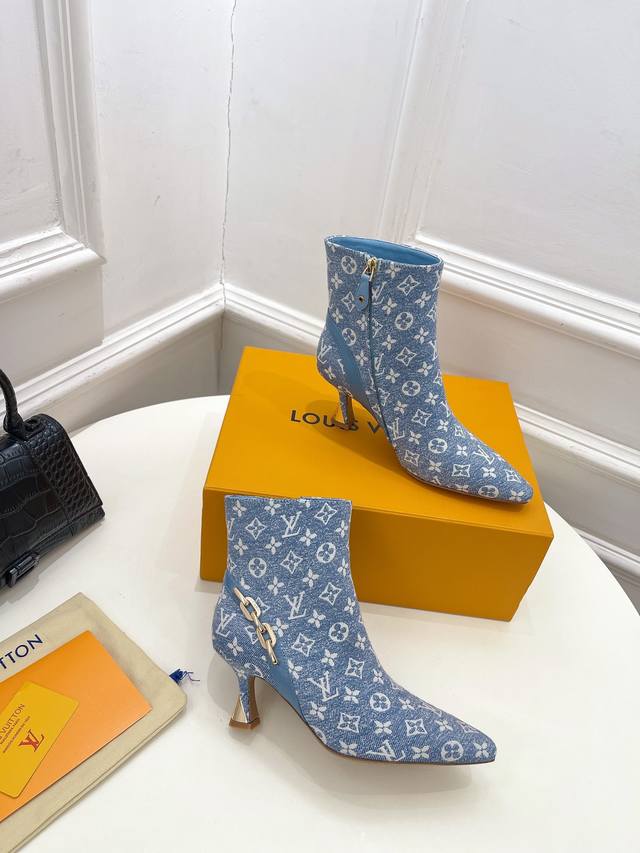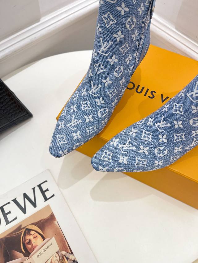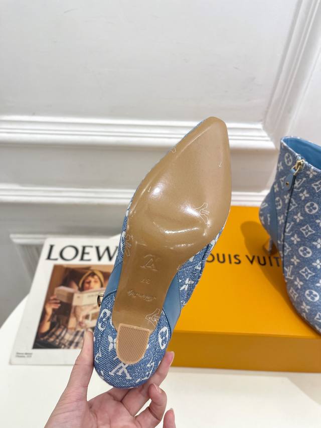 Lv 路易威登 25 2025 秋冬新款 顶级版本 专柜主打最新款 小方头金属跟裸靴 硬货上新 代购级别!高级感十足!国内外博主刷爆的一款,复古又时髦 上脚美炸了!官网主推款★ T 鞋面:原版小牛皮 老花皮 牛仔布 内里:进口山羊皮里 大底:原版意大利真皮大底 跟高:6.5Cm、9.5Cm 鞋码: 35-39 34、40、41定制不退换 出厂价Pp:中跟 牛仔布: 中跟 皮面: