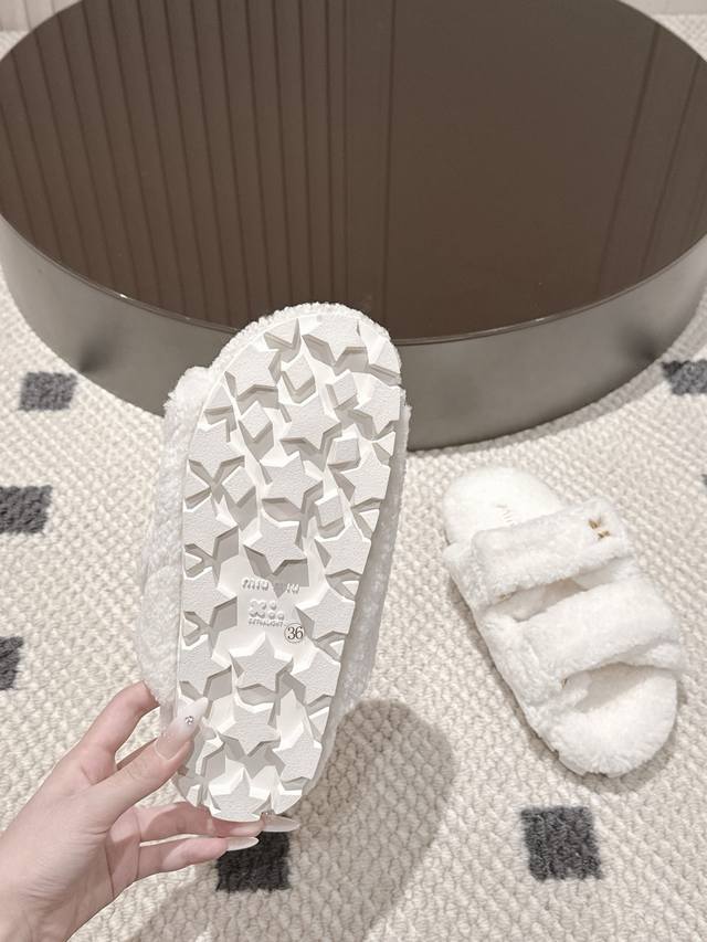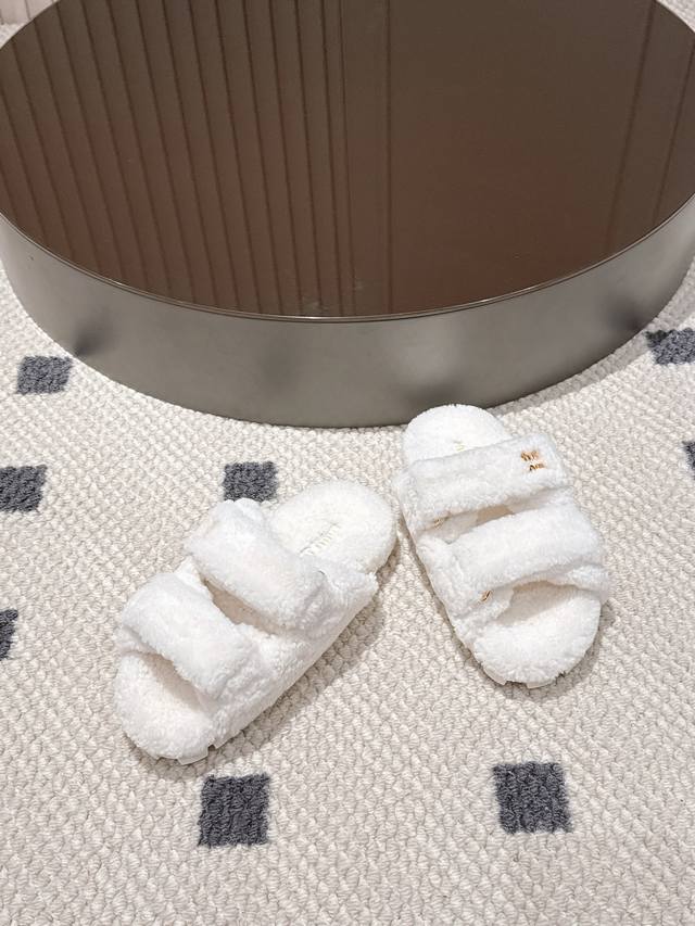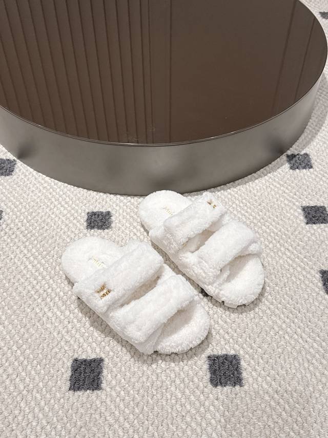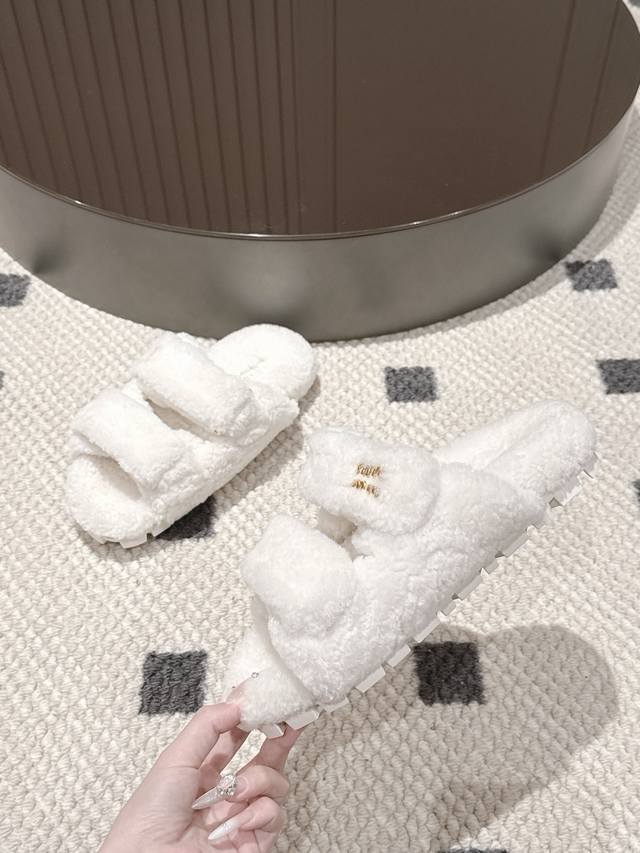 Miu Miu羊毛拖,行走的温柔云朵~蓬松羊毛裹住双脚,软到心尖儿,秋冬凉意瞬间被隔绝。简约又带点精致感,宅家时慵懒自在,搭配小裙裙出街也很吸睛,让每一步都像踩在绵软云朵上,舒适与时尚一键Get~” 码数5-40 41定制