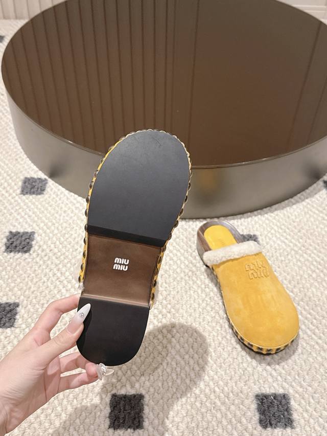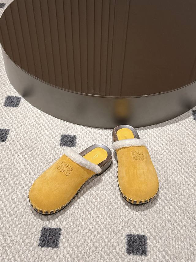 Miu Miu 半包羊毛拖,秋冬氛围感的神!麂皮质感高级,羊毛领圈软乎乎,把温暖牢牢锁在脚下~复古半包设计,慵懒又时髦,黑、棕、米、黄多色可选,不管是配大衣耍酷