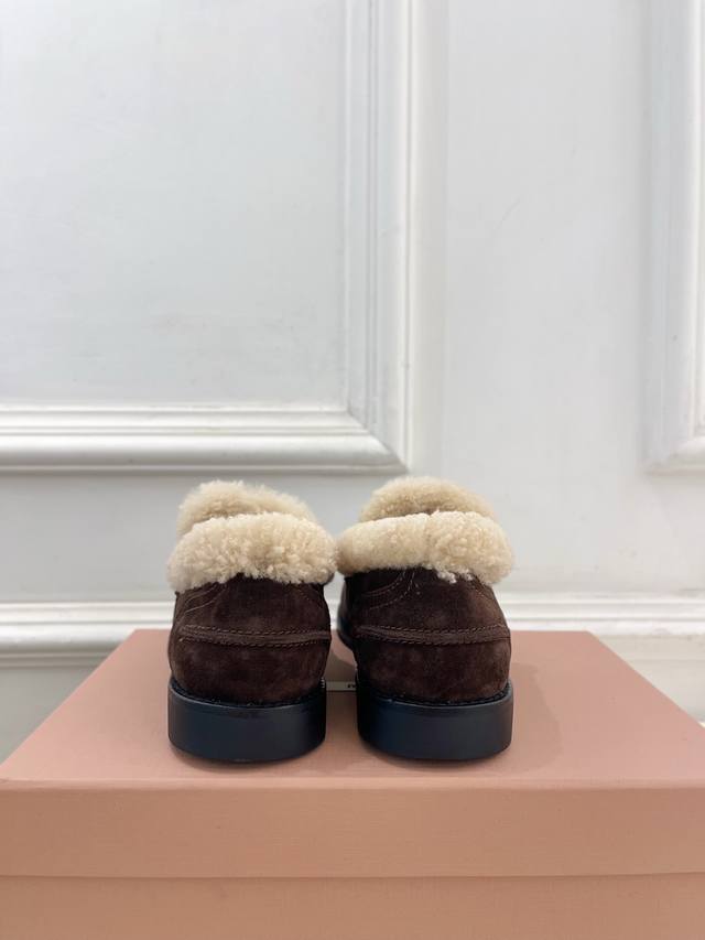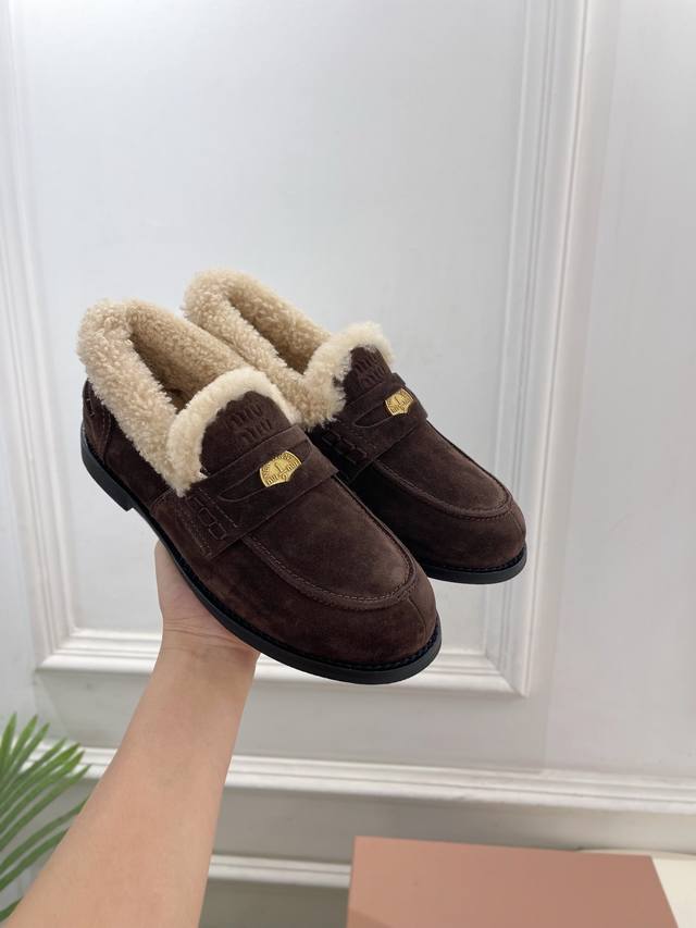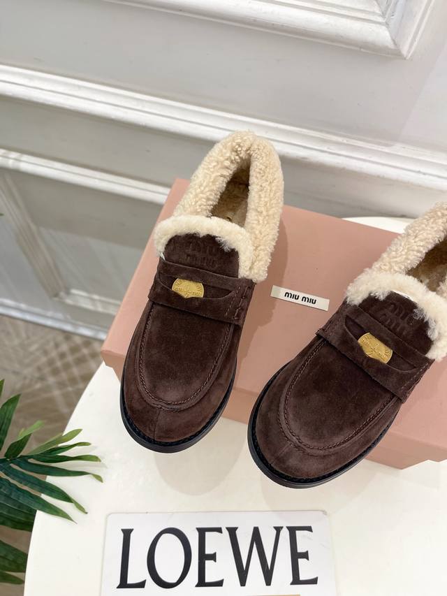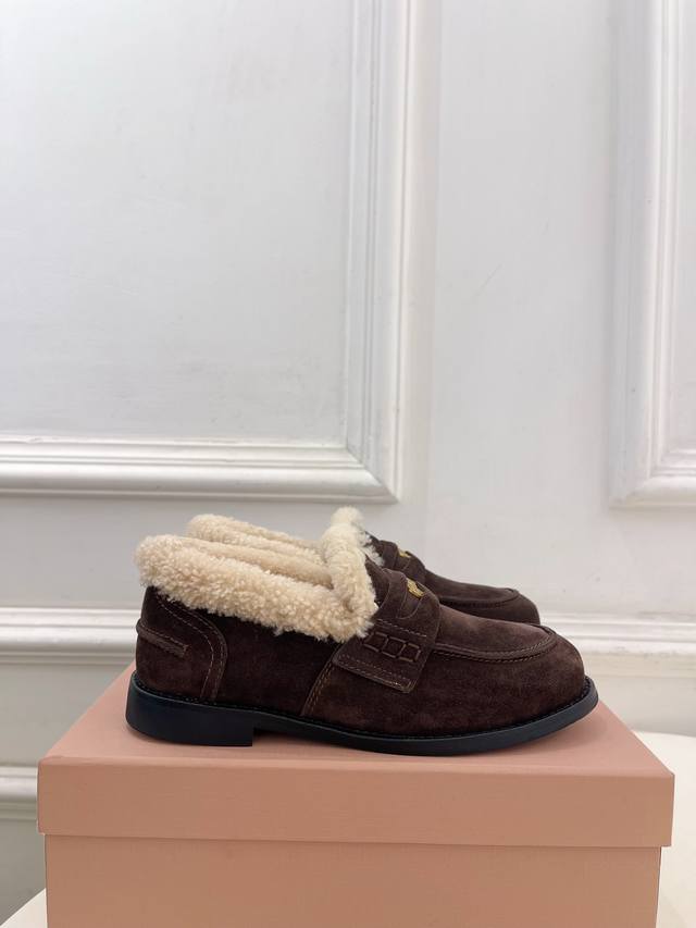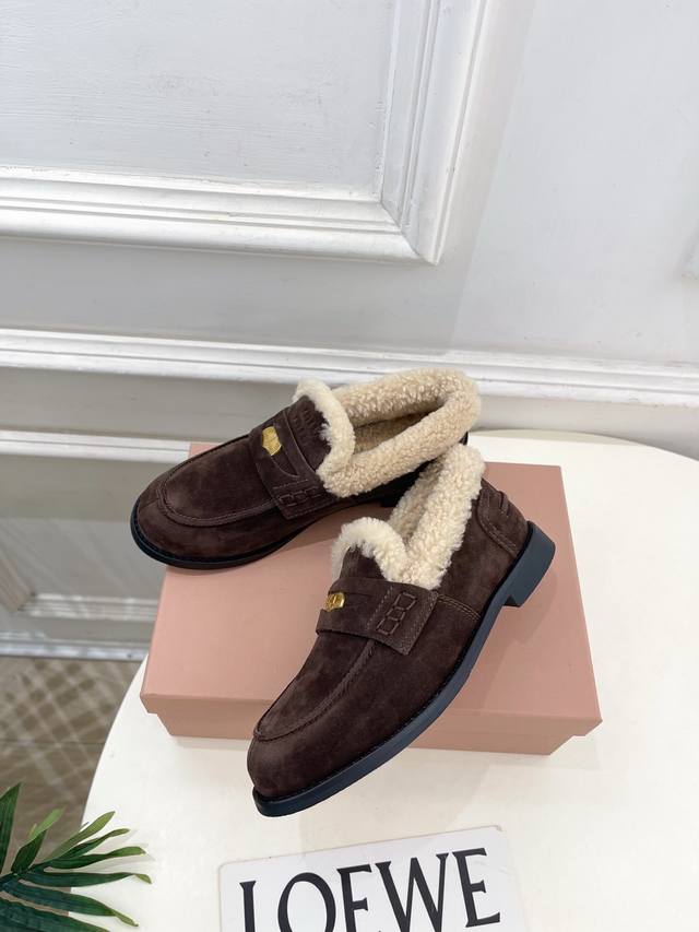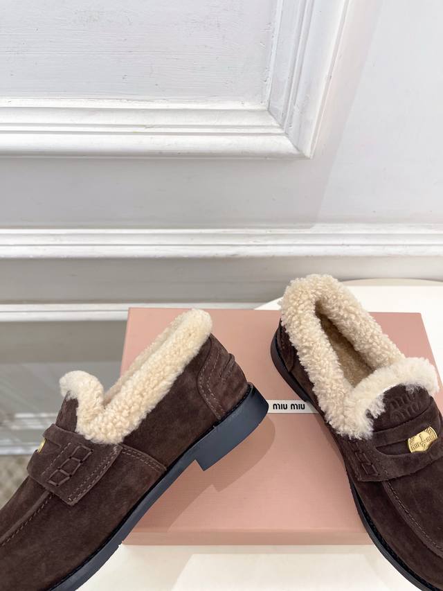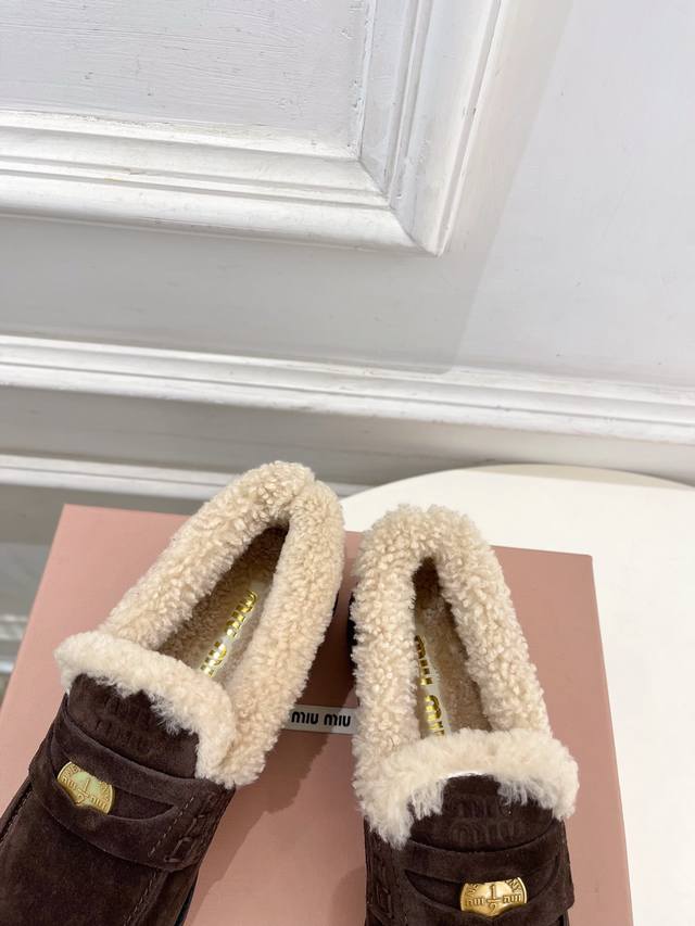 Miu Miu 缪缪 25 2025秋冬新品金币复古毛毛乐福鞋 火爆上新! Bs缪家高货 顶级工艺打造精品质感 无敌舒适 绝对是一见钟情款!时尚百搭,人手必备! T 鞋面:顶级头层擦色牛皮 高丝光牛绒 内里: 进口真羊毛里 大底:原版开模防滑大底 跟高:2Cm 鞋码: 35-39 40.41定制不退换 出厂价Pp: