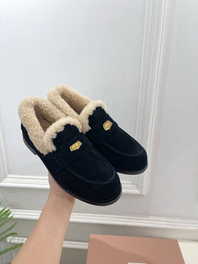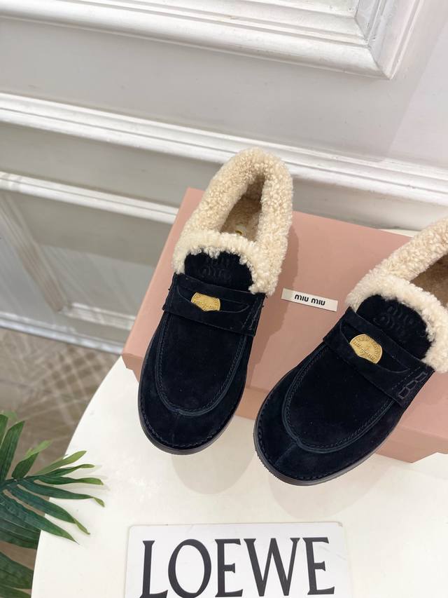 Miu Miu 缪缪 25 2025秋冬新品金币复古毛毛乐福鞋 火爆上新! Bs缪家高货 顶级工艺打造精品质感 无敌舒适 绝对是一见钟情款!时尚百搭,人手必备! T 鞋面:顶级头层擦色牛皮 高丝光牛绒 内里: 进口真羊毛里 大底:原版开模防滑大底 跟高:2Cm 鞋码: 35-39 40.41定制不退换 出厂价Pp: