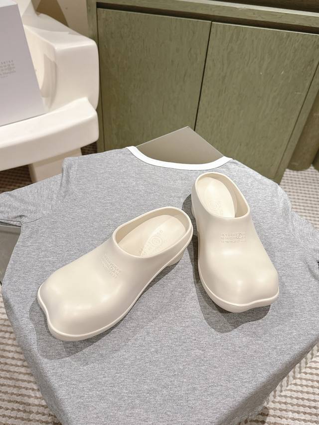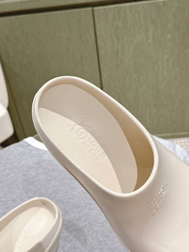 Mm6马吉拉 224 春夏爆款厚底拖鞋网红爆款,进口Eva橡塑,夏季新款黑马单品,海内外时尚博主纷纷上脚大秀,火遍海内外社交平台,时尚达人必入款,重金开模打造 匠心工艺,精准还原每个细节 鞋面:原版开模Eva橡塑一体成型!跟高:4.5Cm 码数:35-39 40定制不退换 包装:原版全套包装