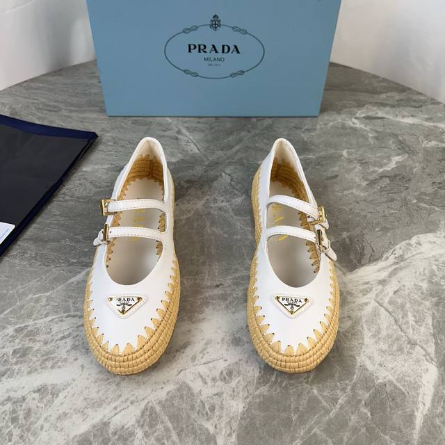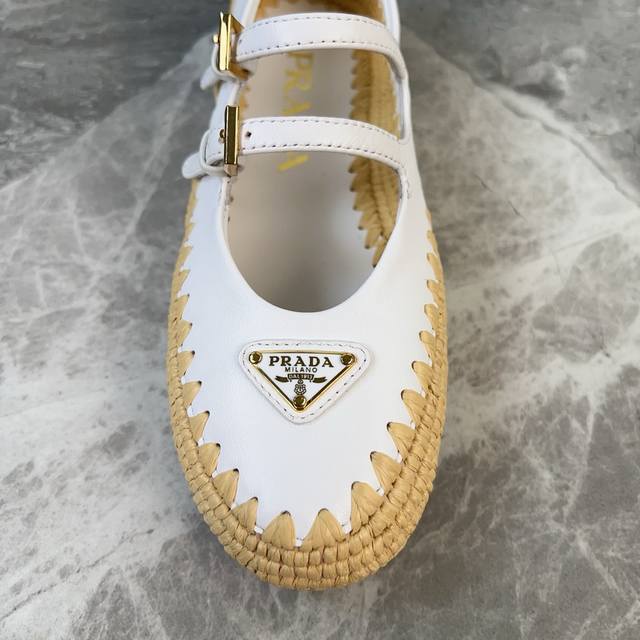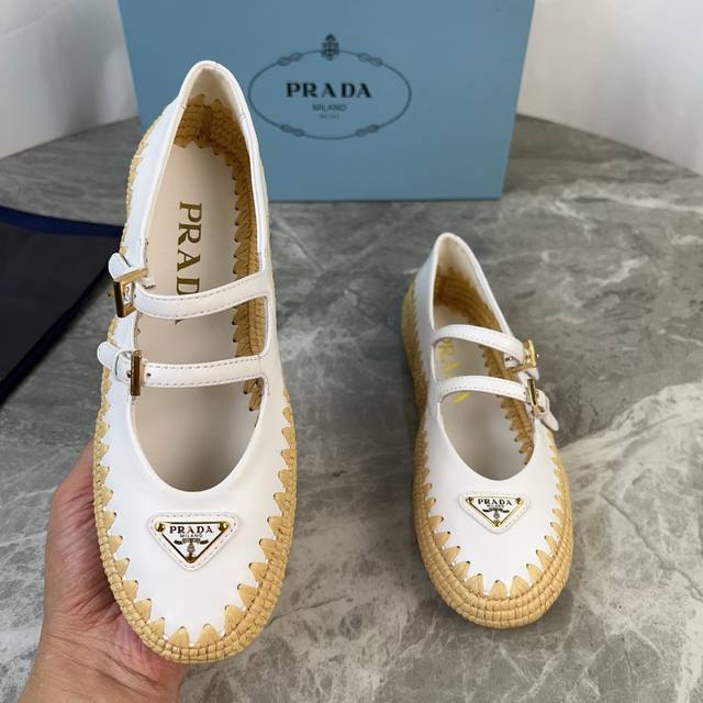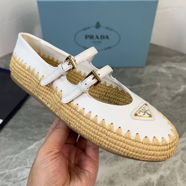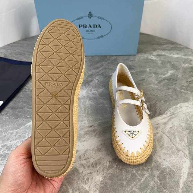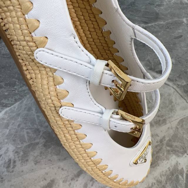 P家最新手工编织款 面:进口拉菲草+羊皮、羊京 里:进口混种羊皮 垫:混种羊皮 底:原版工艺橡胶底 标志性三角标,原版包装 Size:35-41
