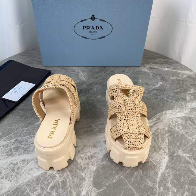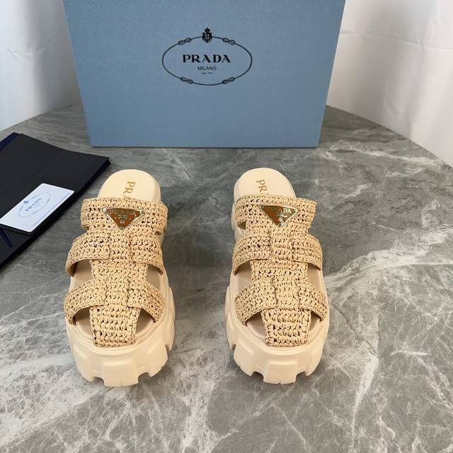 P家最新手工编织款 面:进口拉菲草 里:混种羊皮 底:原版发泡工艺大底 标志性三角标,原版包装 Size:35-41