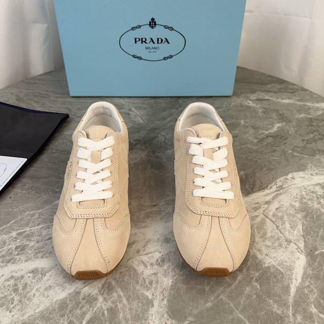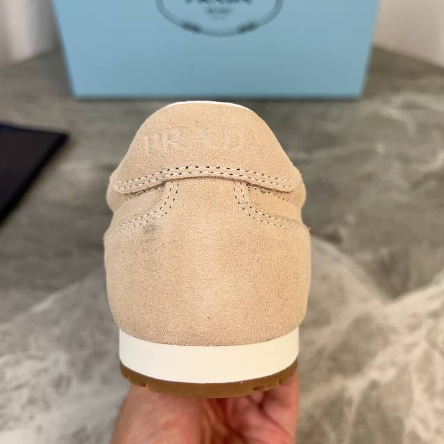 P家最新款德训鞋 面:进口高丝光牛反绒 里:混种丝绸羊皮 垫:丝绸羊皮 底:原版工艺橡胶大底 原版包装 Size :35-41 40.41定制