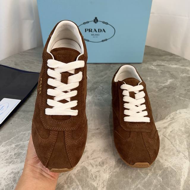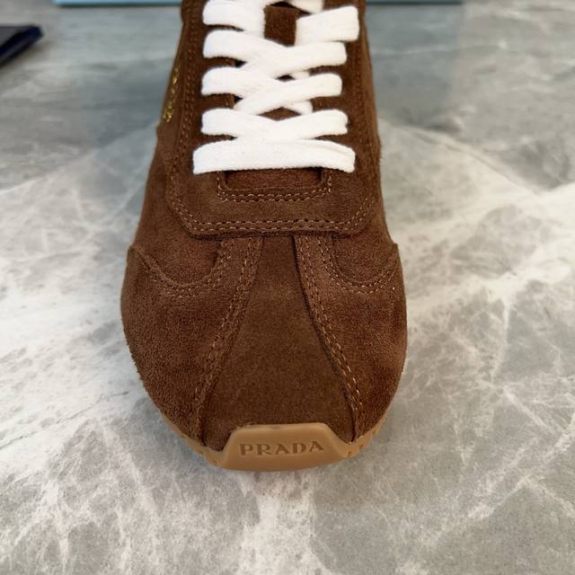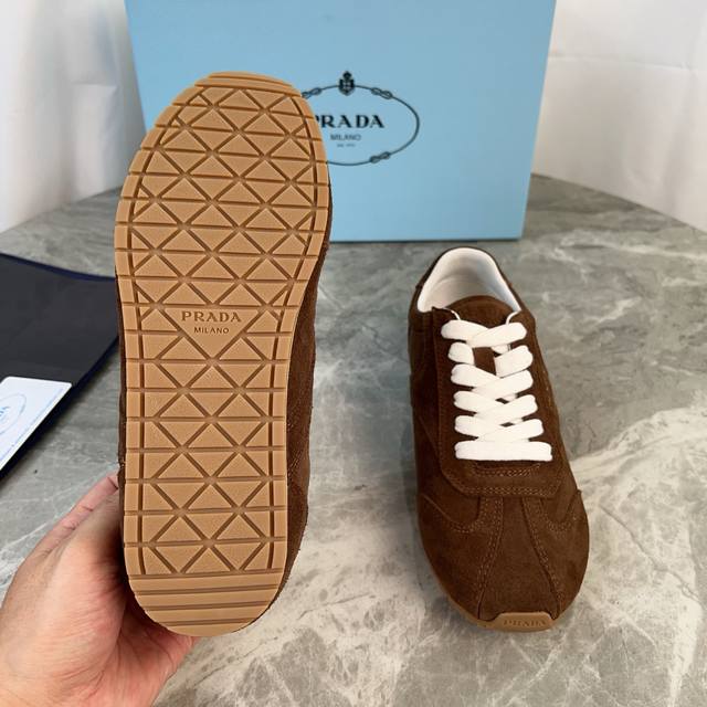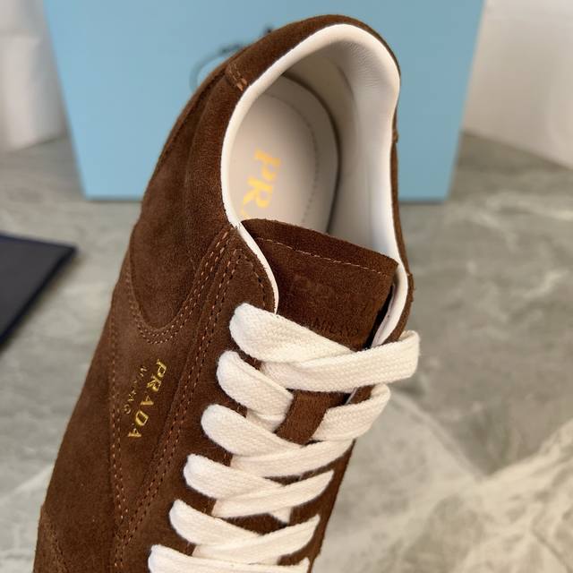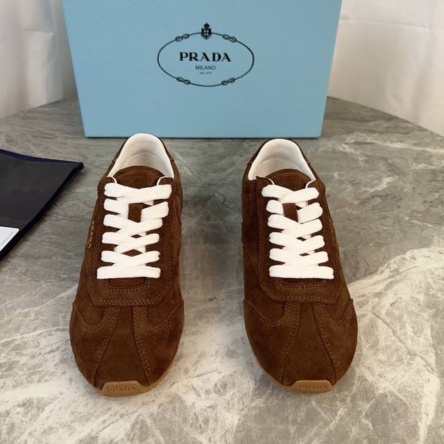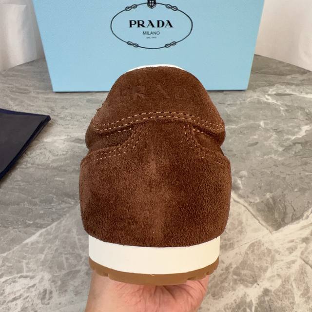 P家最新款德训鞋 面:进口高丝光牛反绒 里:混种丝绸羊皮 垫:丝绸羊皮 底:原版工艺橡胶大底 原版包装 Size :35-41 40.41定制