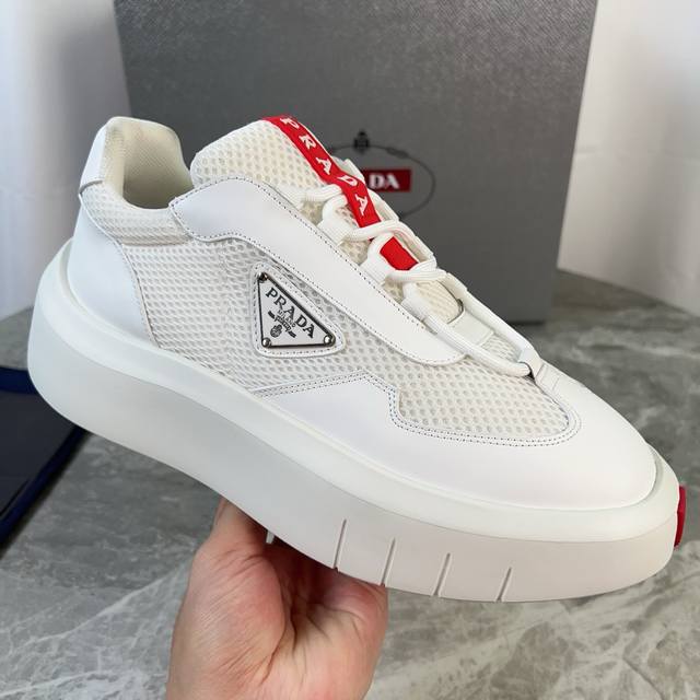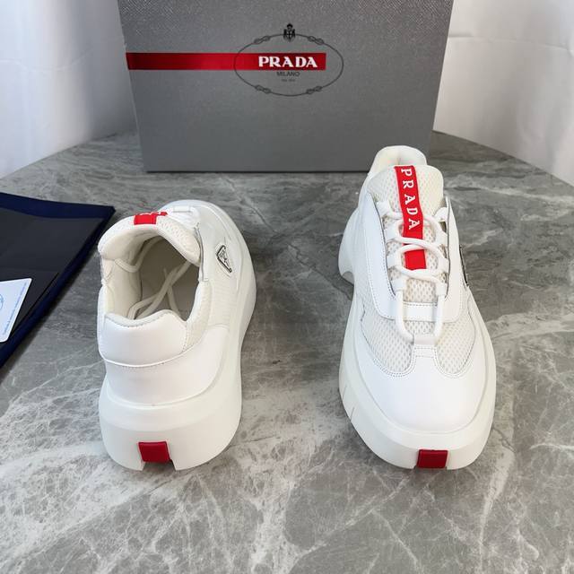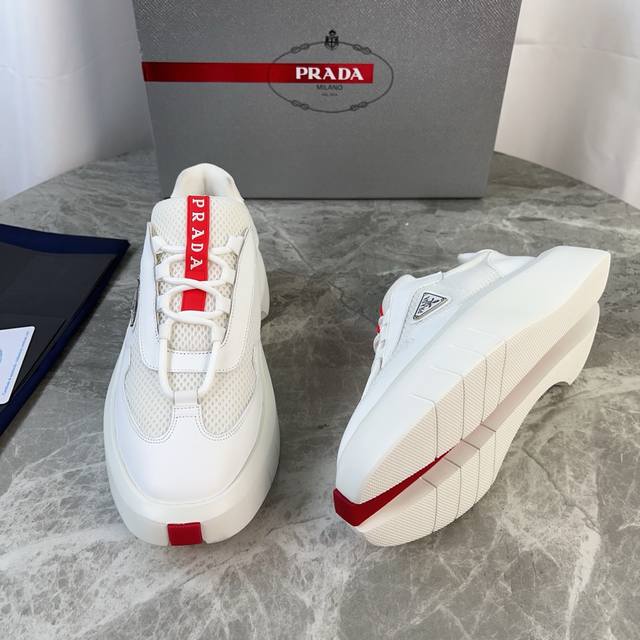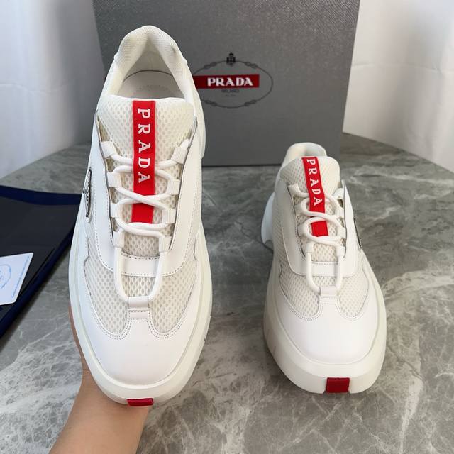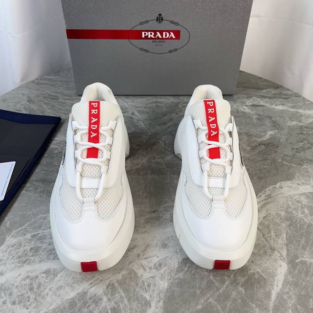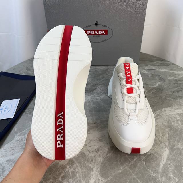 P家最新款 面:丝绸牛皮、进口透气网 里:透气网布 垫:丝绸牛皮 底:原版Eva大底 标志性三角标、原版包装 Size:35-45