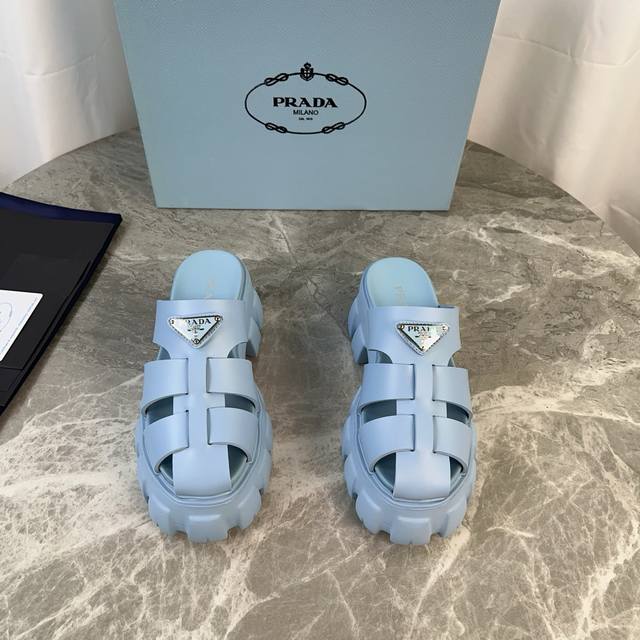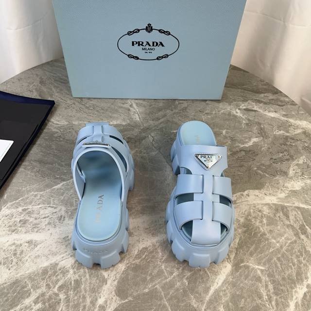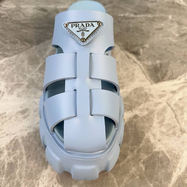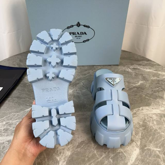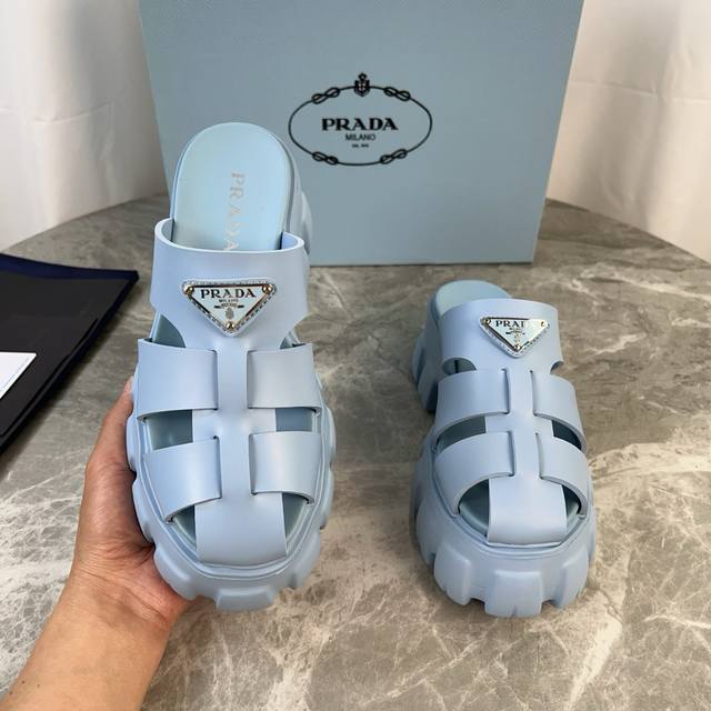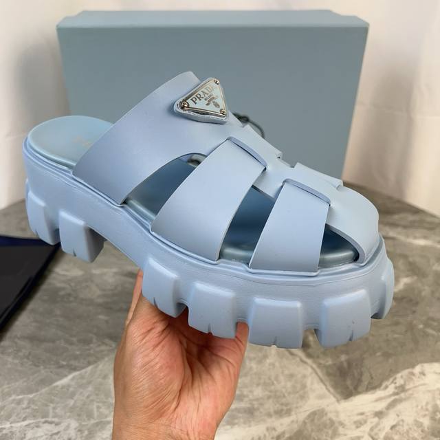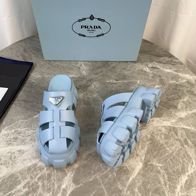 P家最新款 面:原版切割工艺橡胶鞋面 底:超轻发泡底 厚5.5Cm 标志性三角标,原版包装 Size :35-41