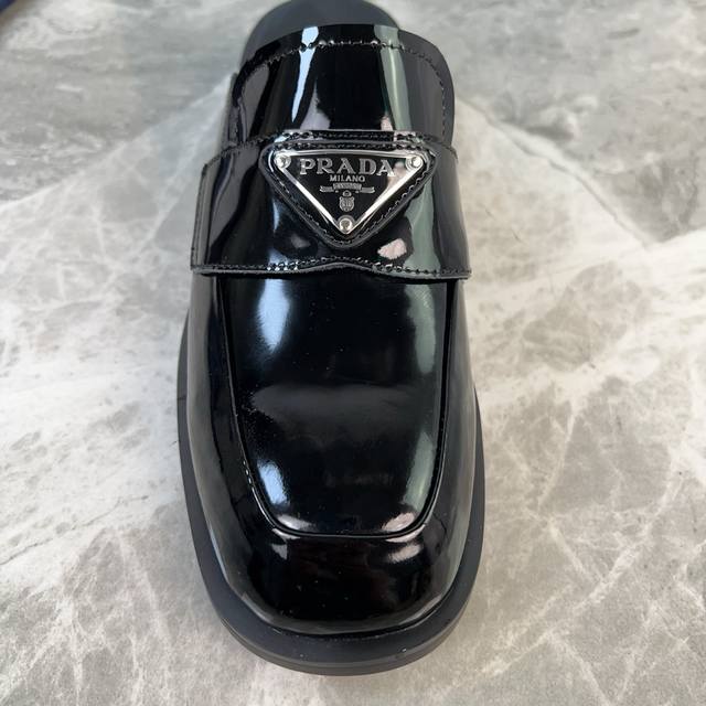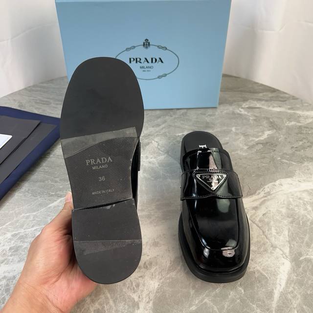 P家最新款 面:进口开边珠、牛漆皮 里:超软牛皮 底:原版开模成型耐磨底 标志性三角标 原版包装 Size:35-41