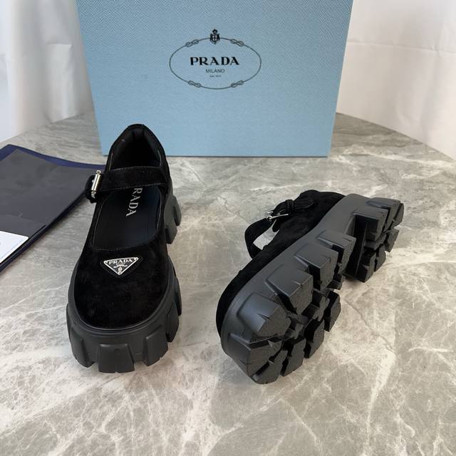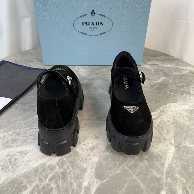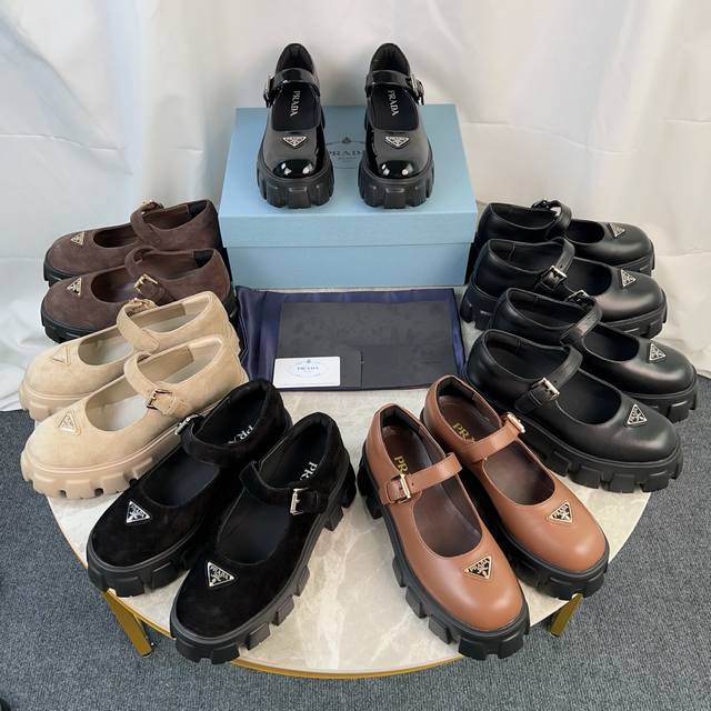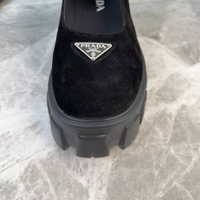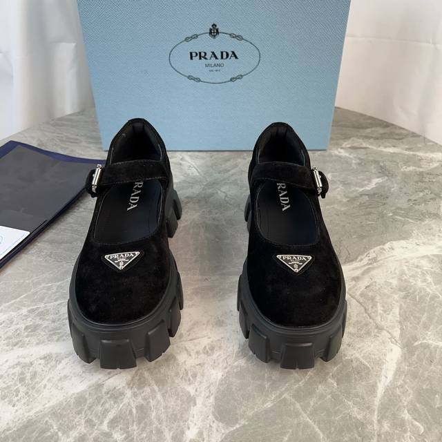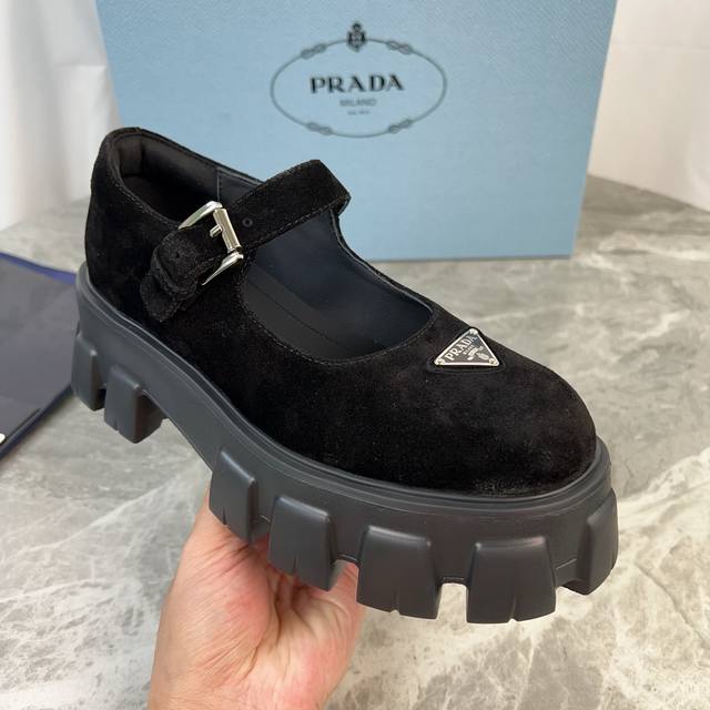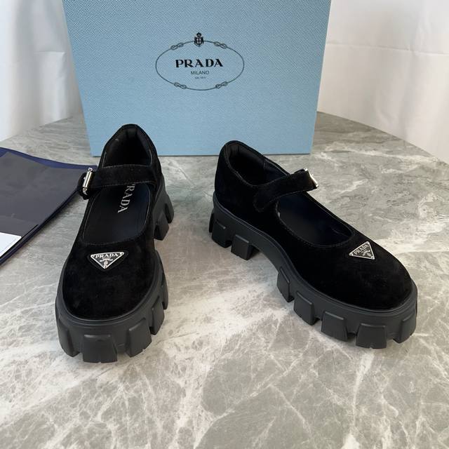 P家最新款 面:进口开边珠、牛皮、牛反绒 里:超软牛皮里 垫:牛皮 底:原版发泡底 标志性三角标,原版包装 Size:35-41 40.41定制