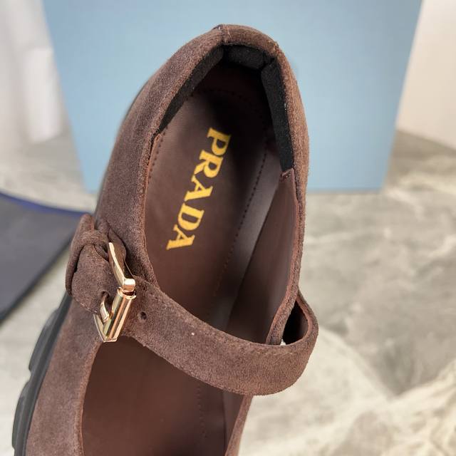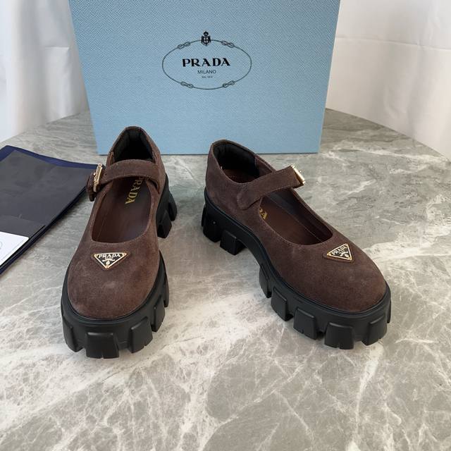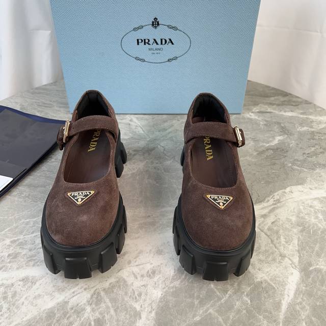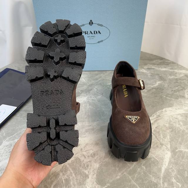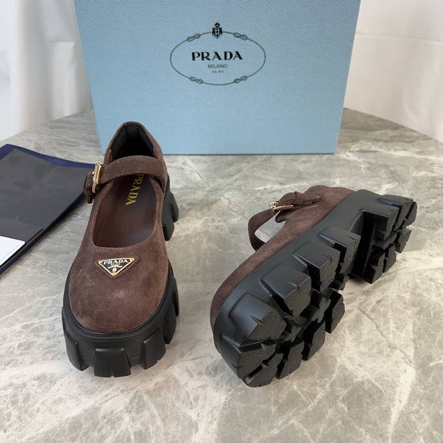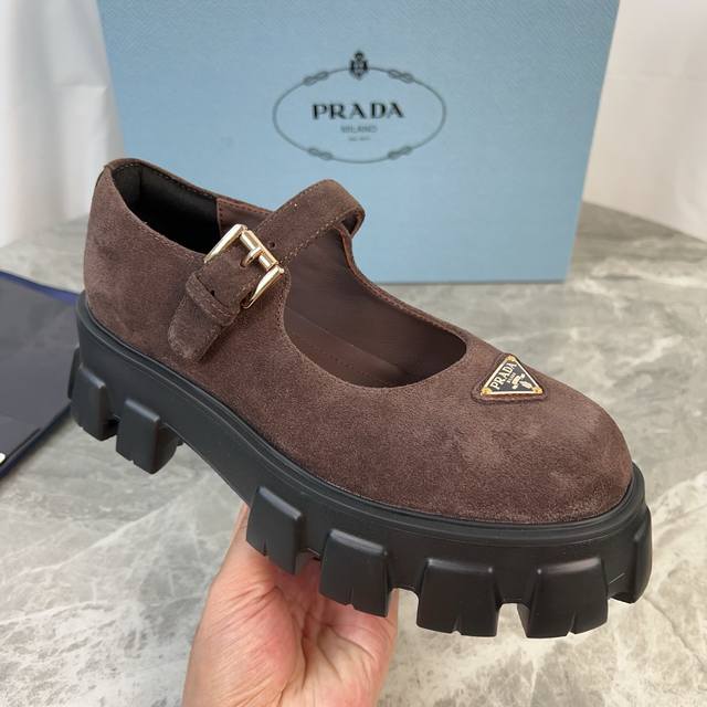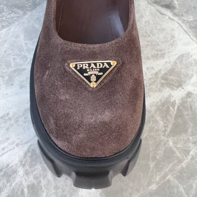 P家最新款 面:进口开边珠、牛皮、牛反绒 里:超软牛皮里 垫:牛皮 底:原版发泡底 标志性三角标,原版包装 Size:35-41 40.41定制