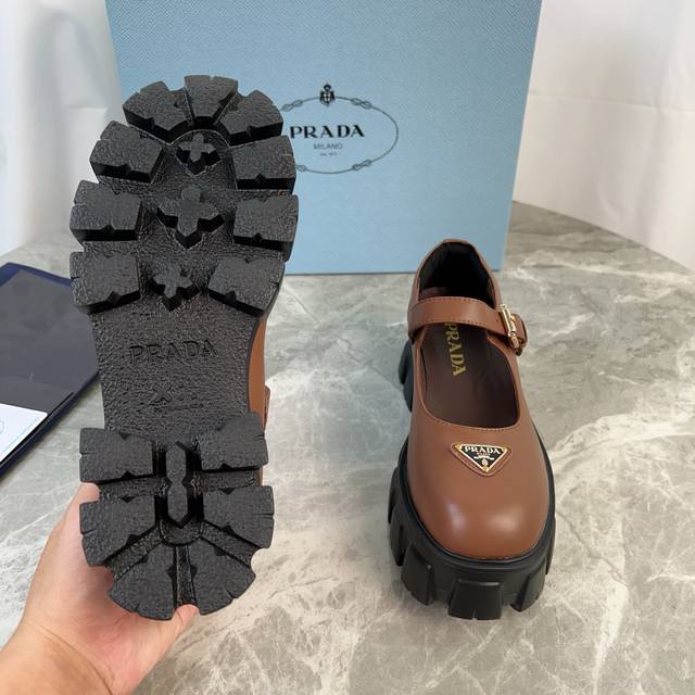 P家最新款 面:进口开边珠、牛皮、牛反绒 里:超软牛皮里 垫:牛皮 底:原版发泡底 标志性三角标,原版包装 Size:35-41 40.41定制