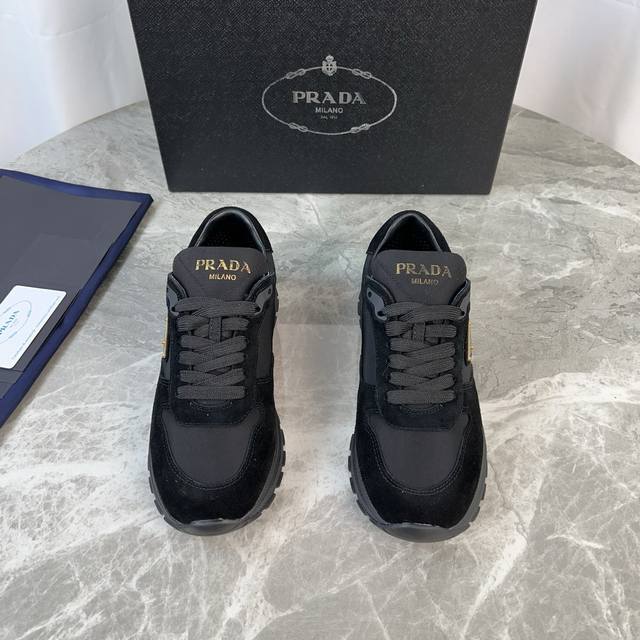 P家最新款 面:高丝光牛反绒+进口品牌布 里:超软混种羊皮 底:原版Tpu大底 标志性三角标,原版包装 Size :35-41