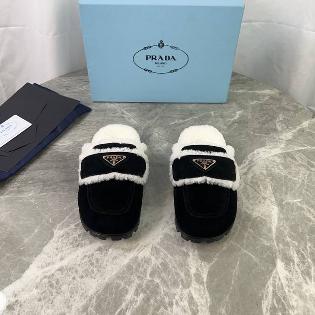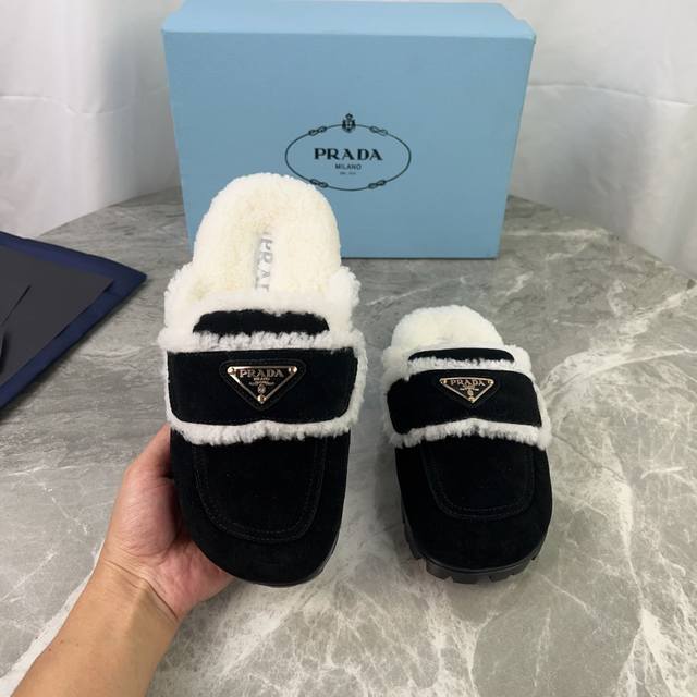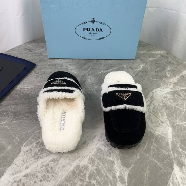 P家最新款 面:高丝光牛反绒 里:原版定制全真羊毛 垫:全真羊毛 底:防滑耐磨花纹橡胶大底 标志性三角标,原版包装 Size :35-41