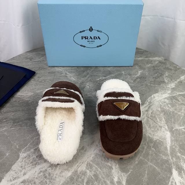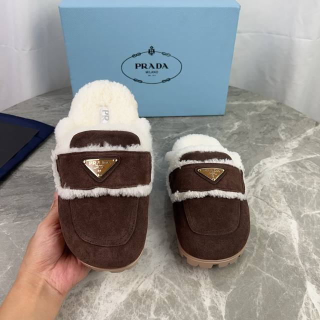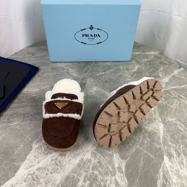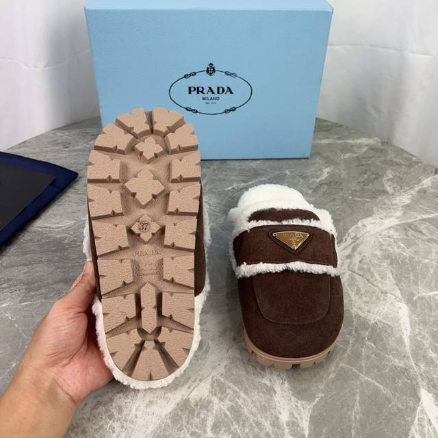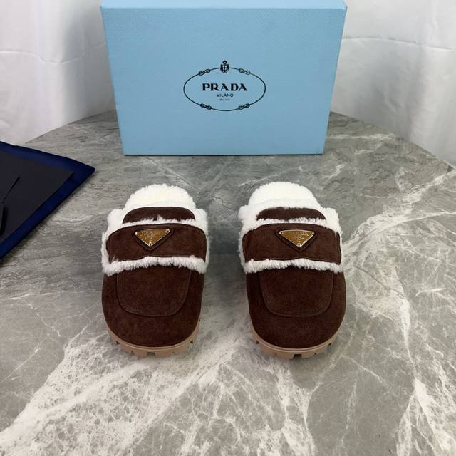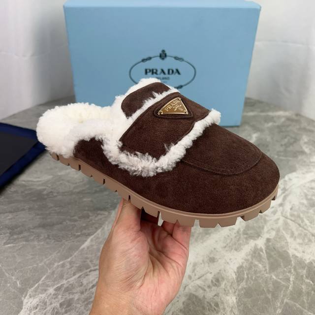 P家最新款 面:高丝光牛反绒 里:原版定制全真羊毛 垫:全真羊毛 底:防滑耐磨花纹橡胶大底 标志性三角标,原版包装 Size :35-41