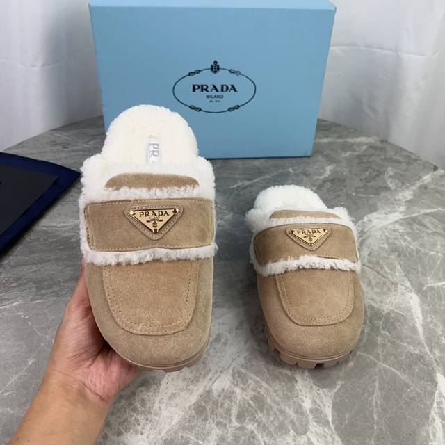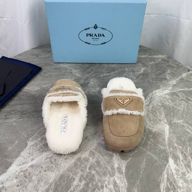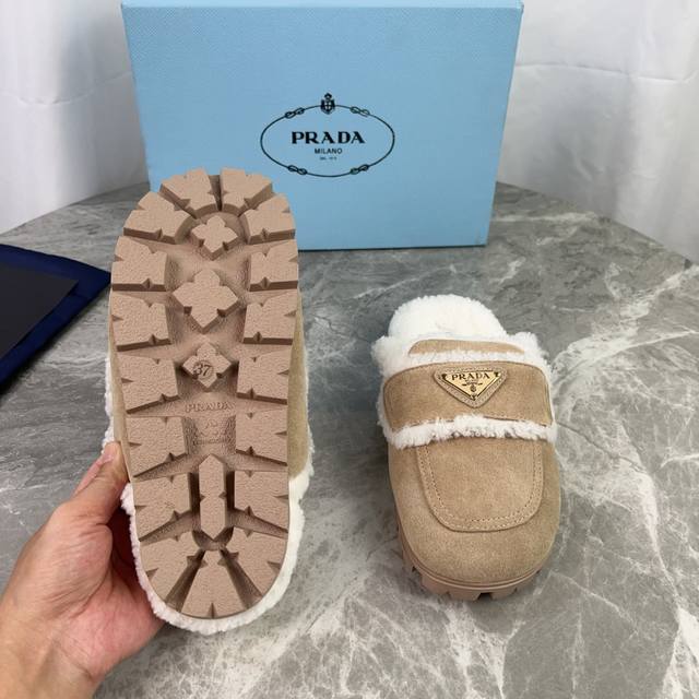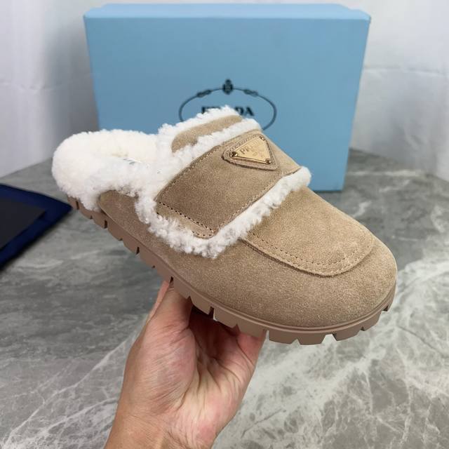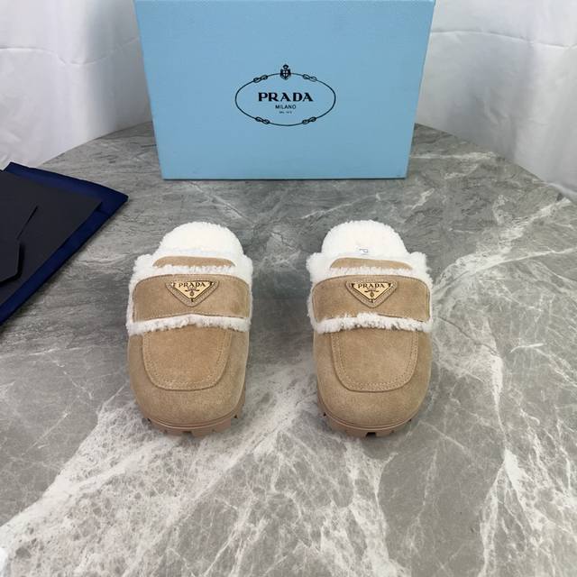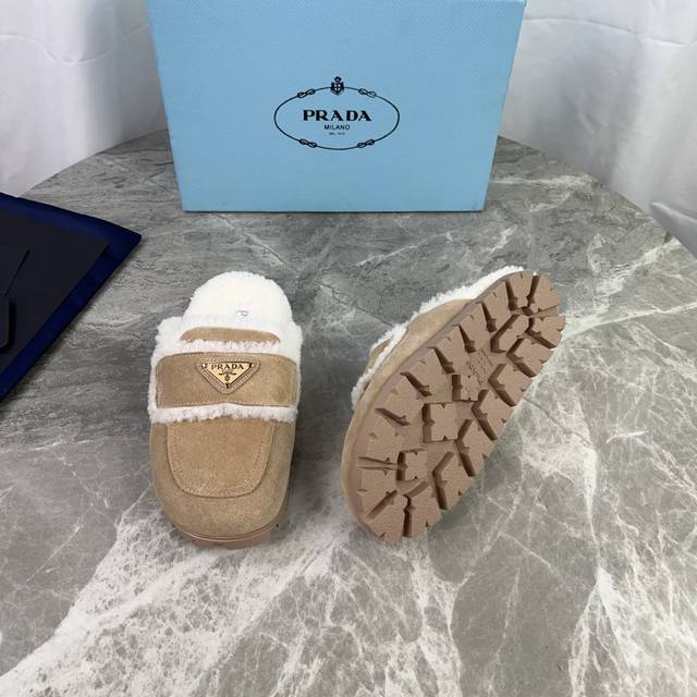 P家最新款 面:高丝光牛反绒 里:原版定制全真羊毛 垫:全真羊毛 底:防滑耐磨花纹橡胶大底 标志性三角标,原版包装 Size :35-41