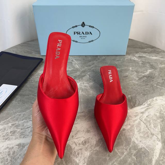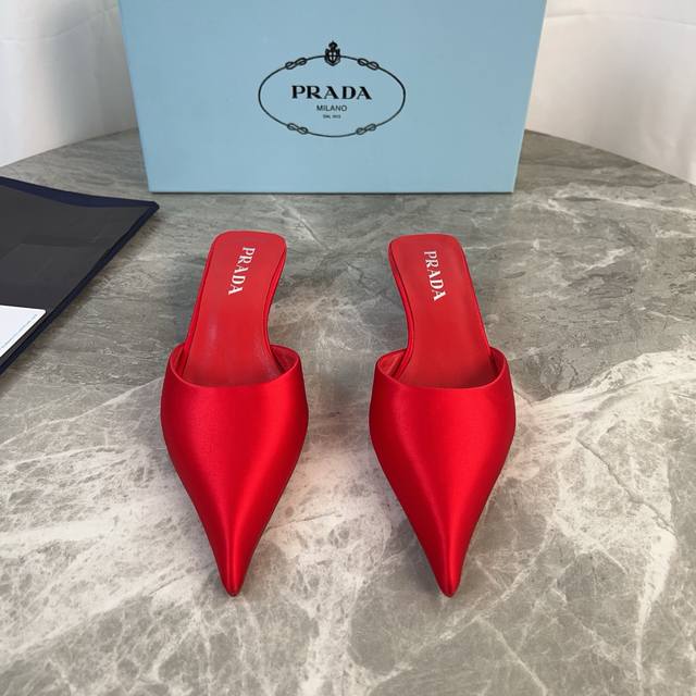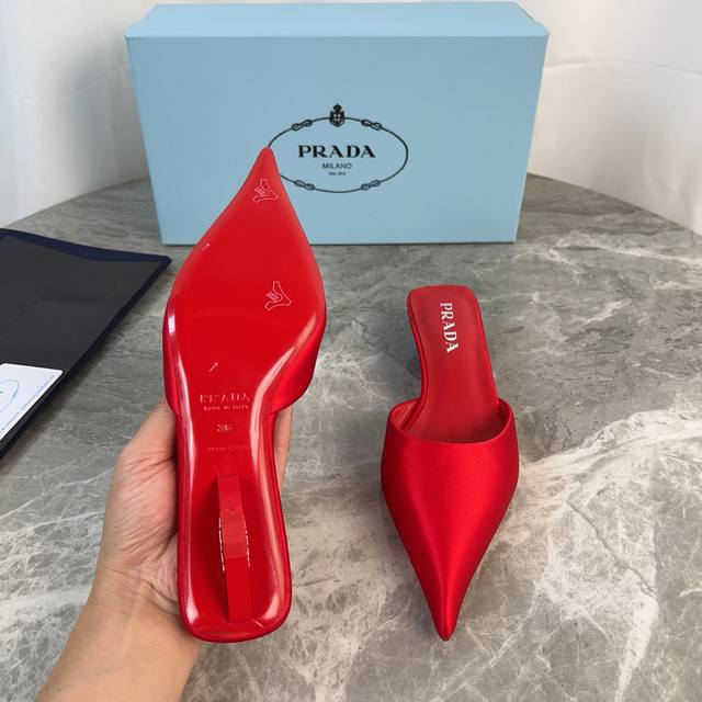 / P家最新款 顶级版本 面:进口真丝绸缎 里:混种羊皮 垫:羊皮垫脚 底:原版真皮大底 跟:涂漆徽标鞋跟,高3.5厘米 原版包装 Size:34-41 34.40