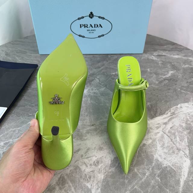 / P家最新款 顶级版本 面:进口真丝绸缎 里:混种羊皮 垫:羊皮垫脚 底:原版真皮大底 跟:绸缎包覆鞋跟,高8.5厘米 原版包装 Size:34-41 34.40