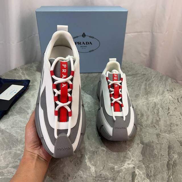 P家男士系带休闲鞋 面:粒面牛皮+进口透气网 里:进口透气网布+牛皮垫脚 底:原版橡胶厚底 经典红标鞋舌 Size:38-45 46定做