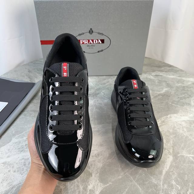 P家经典款 面:头层牛漆皮+品牌网布 里:进口Bk网布 垫:牛皮冲孔透气垫脚 底:原版开模花纹防滑橡胶底 原版包装 Size:35-45