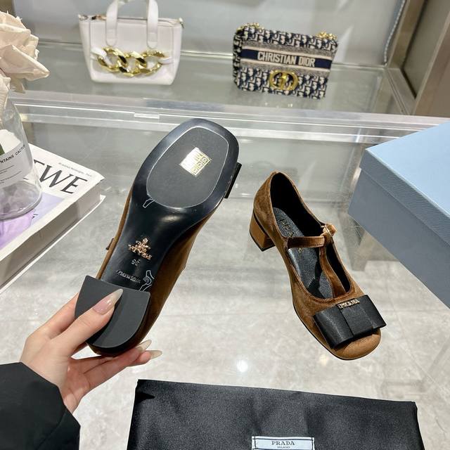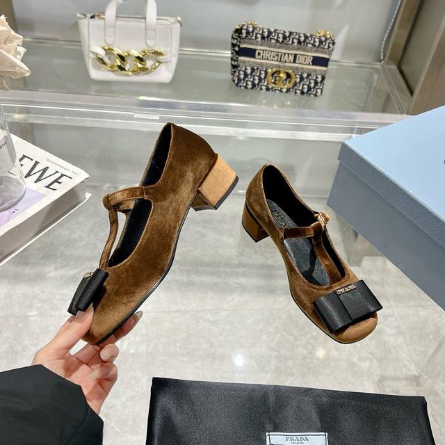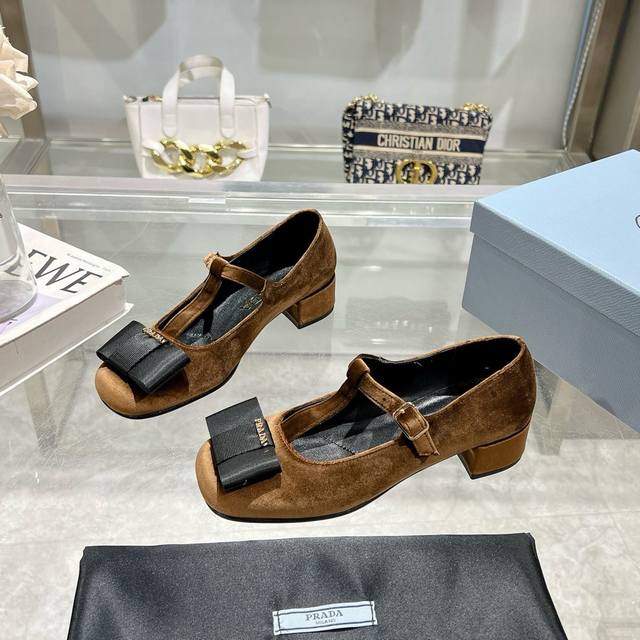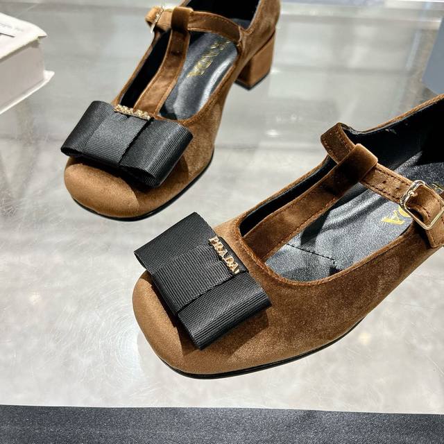 / Prada普拉达 25Ss早春新款 小红书各大博主推荐,彰显经典魅力。 注塑真皮大底,进口混种羊内里。 这款丝绒质感高跟鞋将典雅气质与摩登精致融为一体,精美的蝴