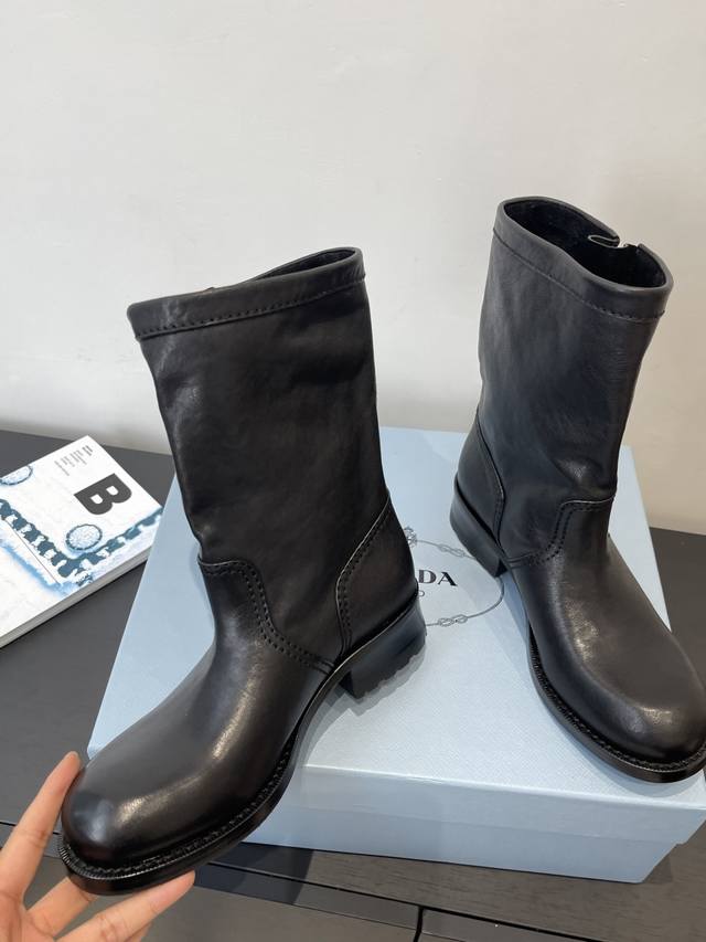 Prada普拉达 26早春 全新走秀王炸长靴靴 全新一季做旧系列堆堆感上脚尤为惊艳到你的一款 相比Miu更为实用场景更优秀 闭眼入都是不会后悔Zp开发鞋型、订制