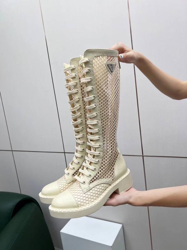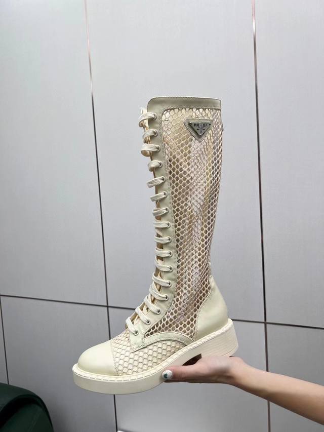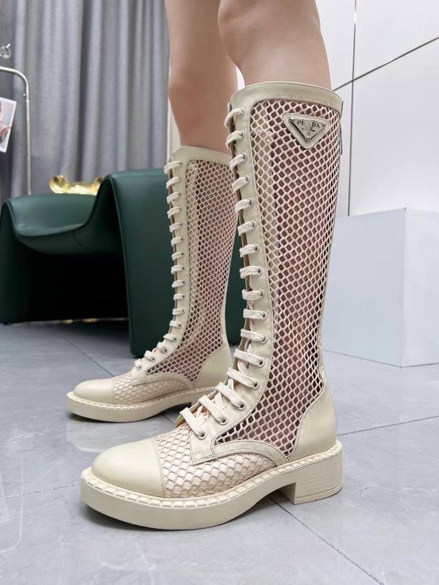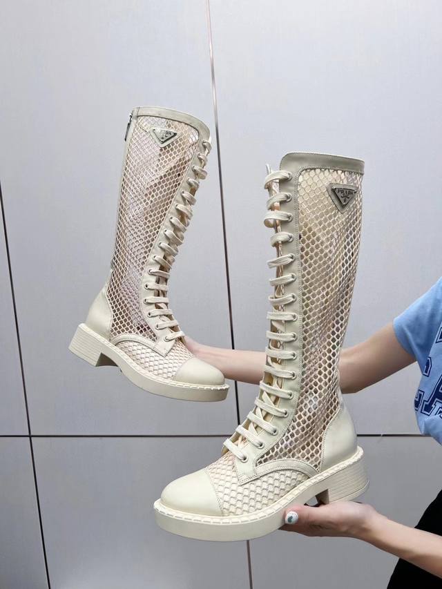 Prada普拉达2630你不能停止热爱军靴温暖的季节,需要特殊的解决方案,鱼网是个不错的主意 非常符合本季的海洋主题原版1:1 三角扣 拉链扣开模!进口环保开边珠牛皮、珠光羊皮双层内里!环保橡胶发泡大底 轻便舒适!跟高4.5Cm35-40码