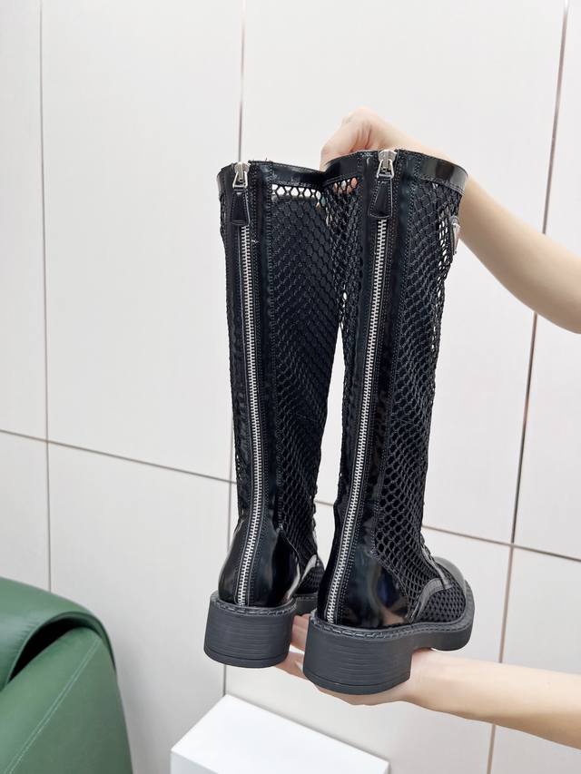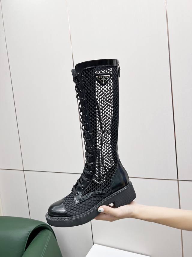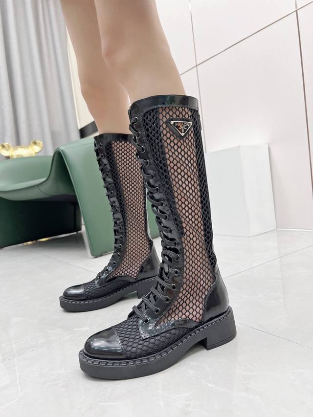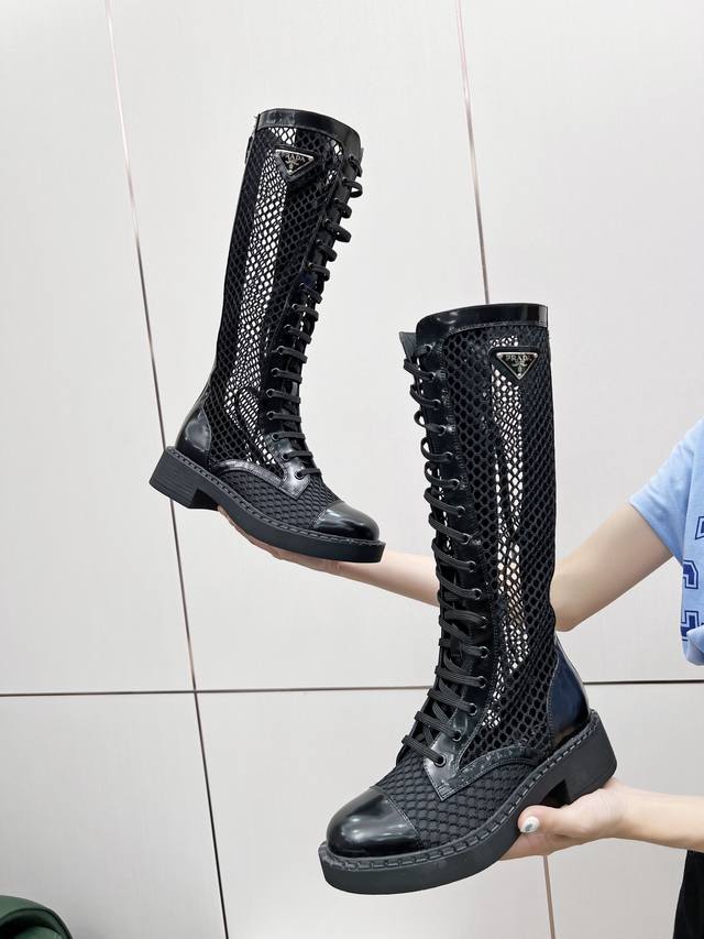 Prada普拉达2630你不能停止热爱军靴温暖的季节,需要特殊的解决方案,鱼网是个不错的主意 非常符合本季的海洋主题原版1:1 三角扣 拉链扣开模!进口环保开边珠牛皮、珠光羊皮双层内里!环保橡胶发泡大底 轻便舒适!跟高4.5Cm35-40码