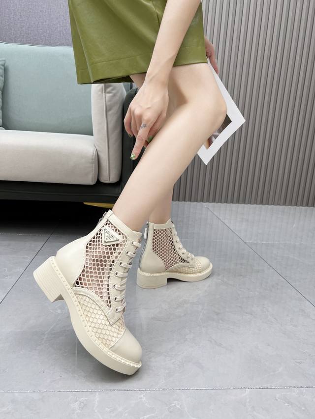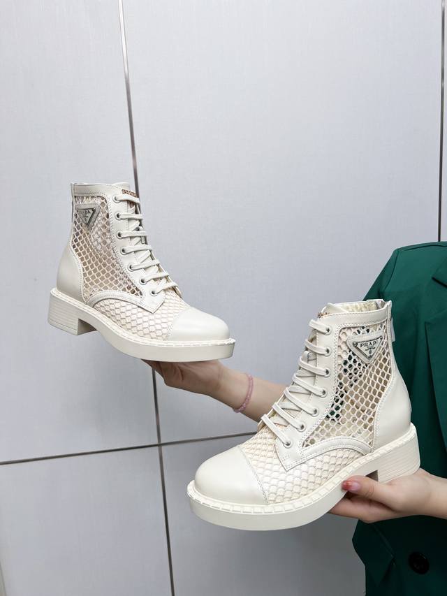 Prada普拉达2630你不能停止热爱军靴温暖的季节,需要特殊的解决方案,鱼网是个不错的主意 非常符合本季的海洋主题原版1:1 三角扣 拉链扣开模!进口环保开边珠牛皮、珠光羊皮双层内里!环保橡胶发泡大底 轻便舒适!跟高4.5Cm35-40码