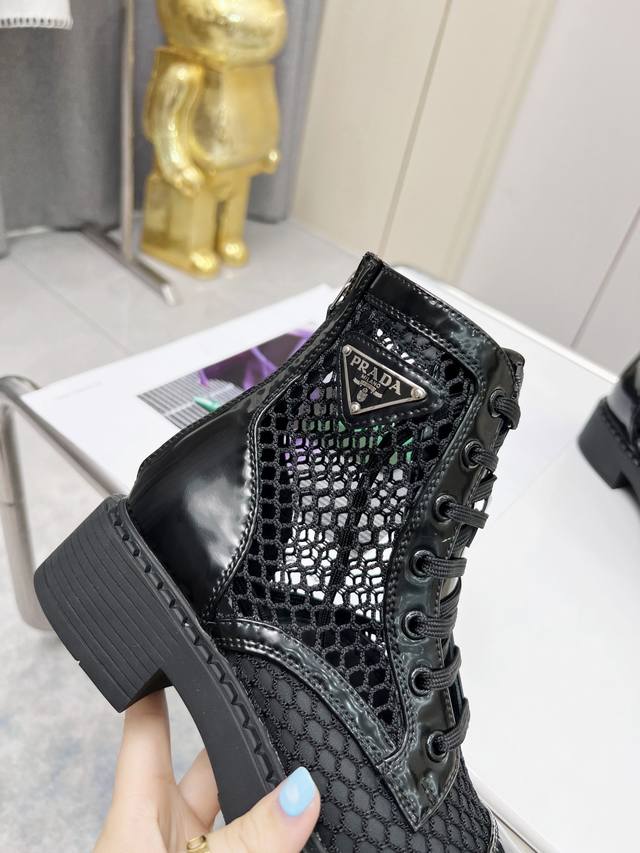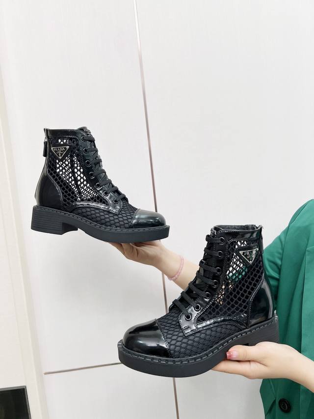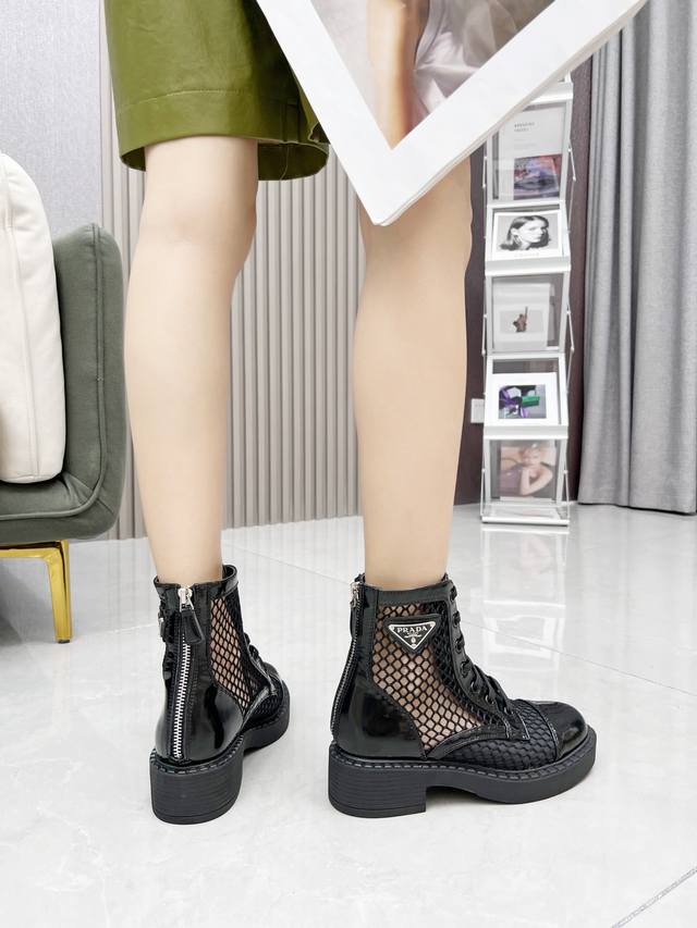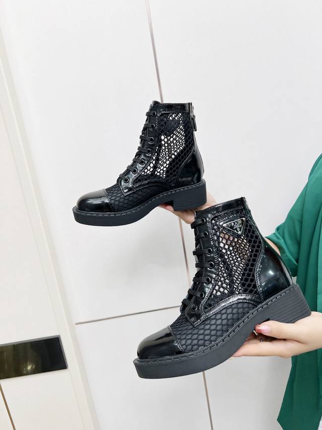 Prada普拉达2630你不能停止热爱军靴温暖的季节,需要特殊的解决方案,鱼网是个不错的主意 非常符合本季的海洋主题原版1:1 三角扣 拉链扣开模!进口环保开边珠牛皮、珠光羊皮双层内里!环保橡胶发泡大底 轻便舒适!跟高4.5Cm35-40码